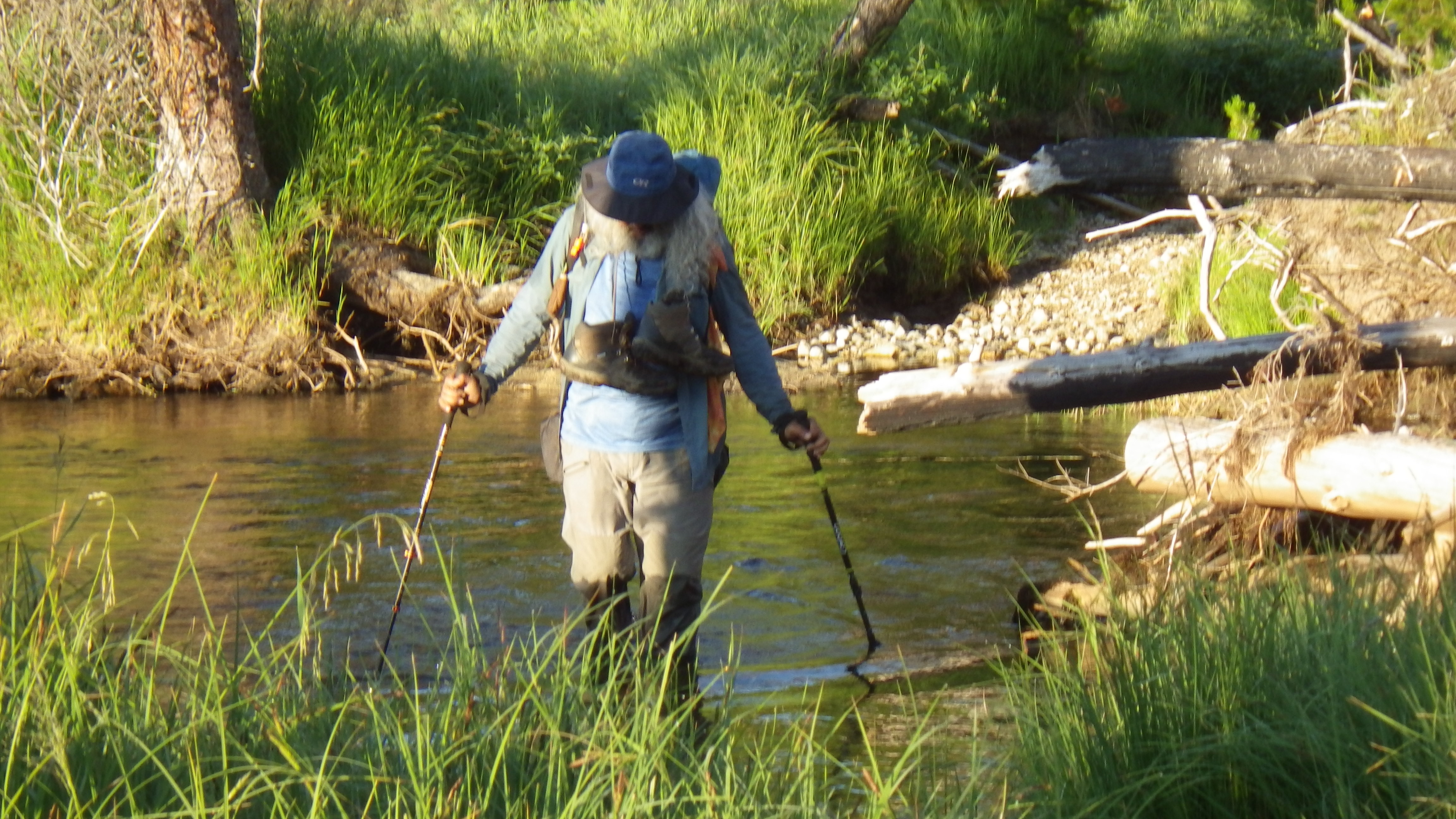 A short hike got us from our campsite all the way over to our next crossing. Ambrose took his boots off for the crossing, and I took a tree. This crossing usually has a lot of fallen trees bridging it, so I had a choice. I took a look at the options and picked the one closest to the trail. I’m not super scared of heights, but for some reason, crossing a stream on a log gets my nervous. Heart pounding, clammy skinned, tight breathed nervous. It freaks me out, even though I’ve never fallen off one. It scares me, and I do it anyway, just to avoid getting my feet wet.