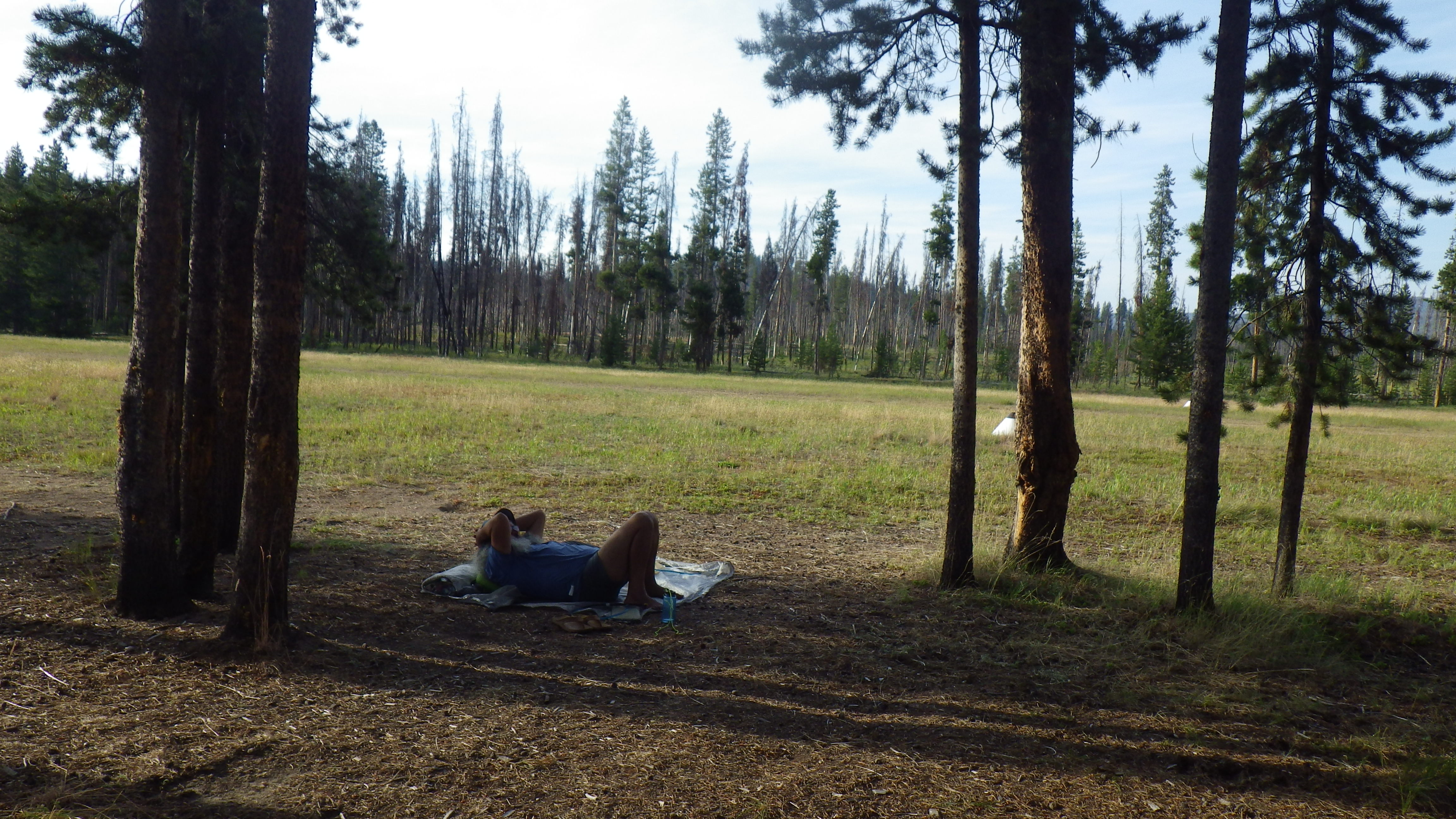 We both displayed appallingly bad etiquette when we first arrived. It was all about dumping out packs and getting out clothes to wash and not about keeping everything close by and in its proper place. We spread ourselves and our gear out around the campsite that we claimed (same one we claim every time). We got laundry done and hanging out to dry, and then we spent the afternoon chasing shade and trying not to overheat.