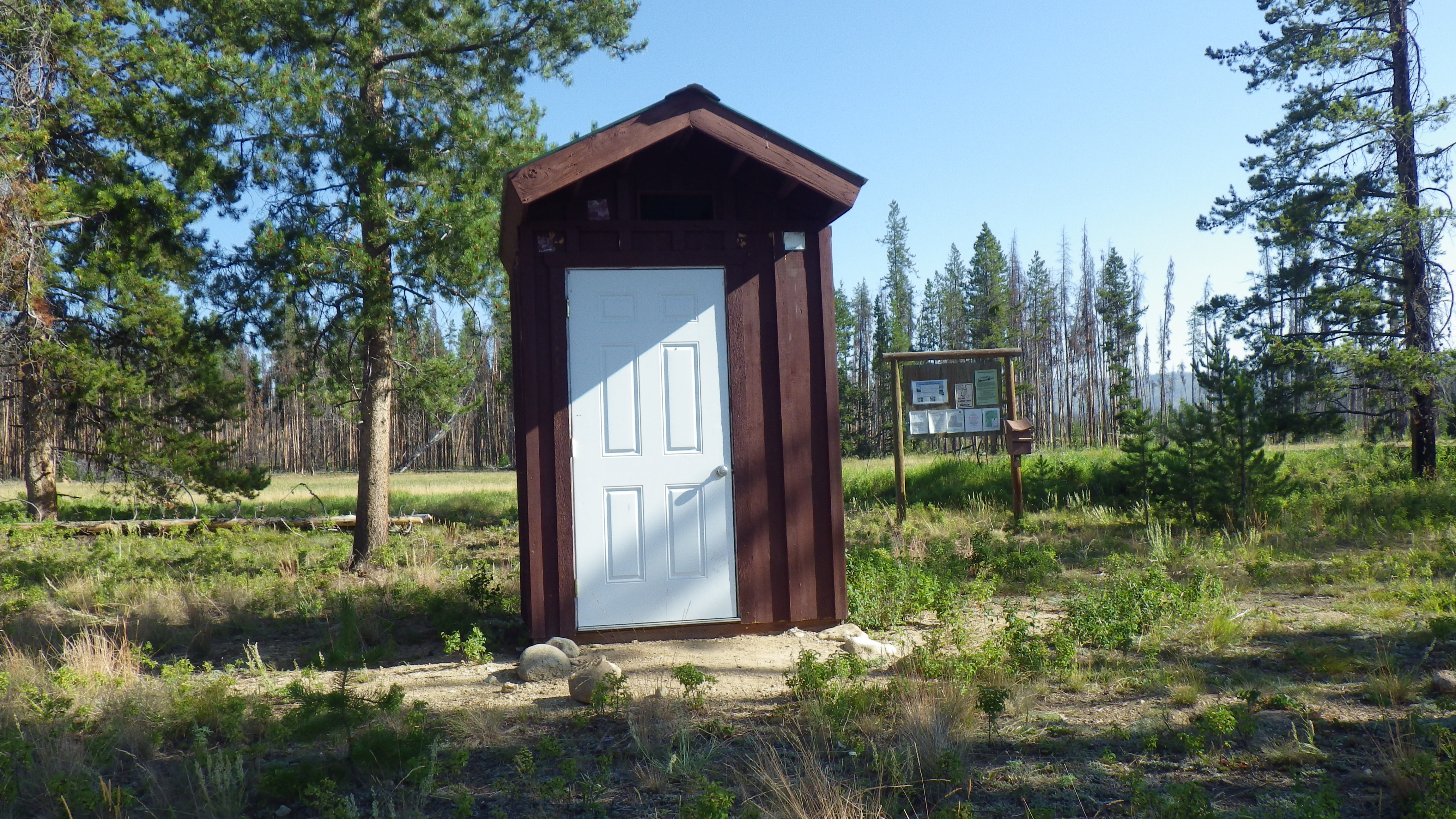 The pit toilet was there, nice and clean. No toilet paper, but I was happy to bring my own for the privilege of sitting for my business.