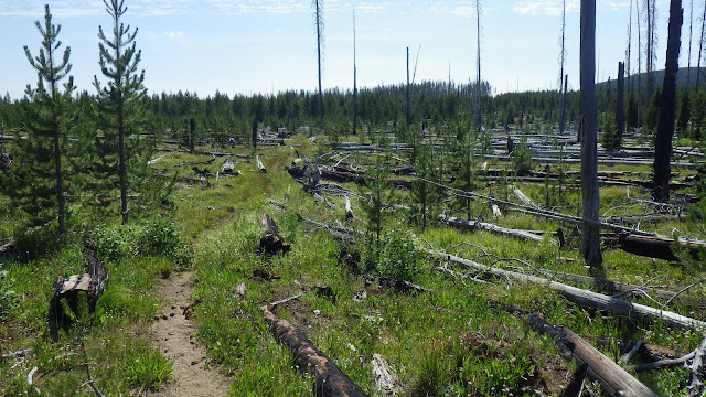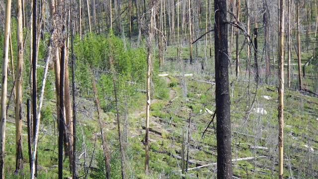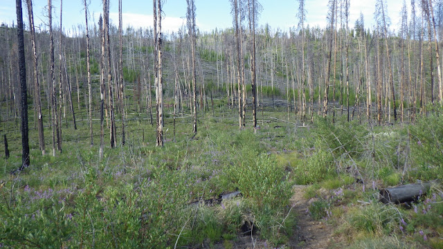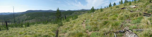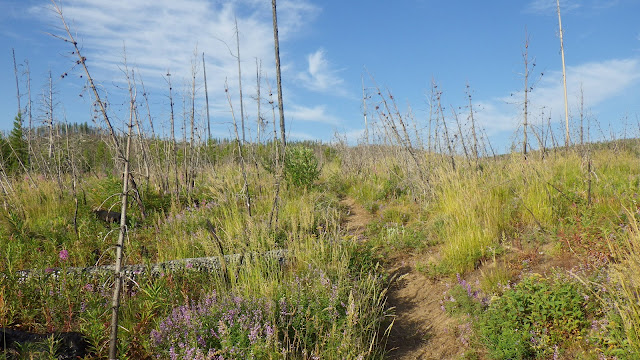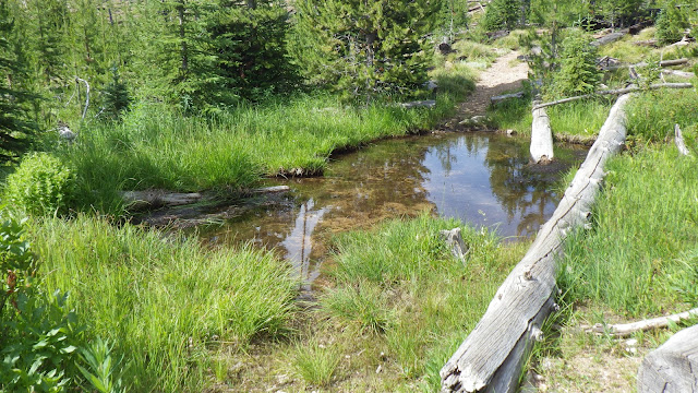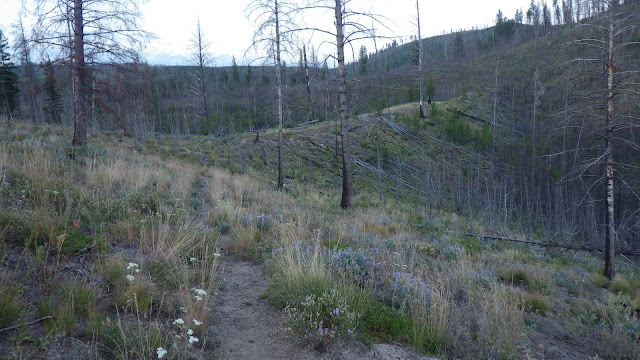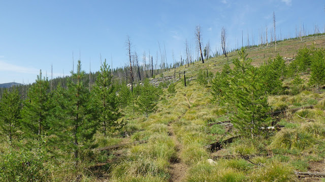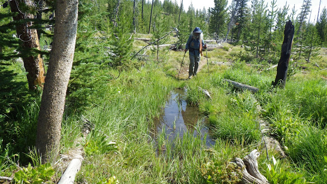 We stayed together a bit for the next section, but my legs wanted to stretch and I couldn’t say no to them. A crew from the Idaho Trails Association had flown into Chamberlain last year and done the trail we were on. I have to say they did a bang up job. Easy to follow, very little treefall. The first time we were on that trail, it was very difficult to follow. I suspect they did a bit of a reroute, because it seemed to take much longer than I remembered to get from Lodgepole over past the burned section and to the junction.