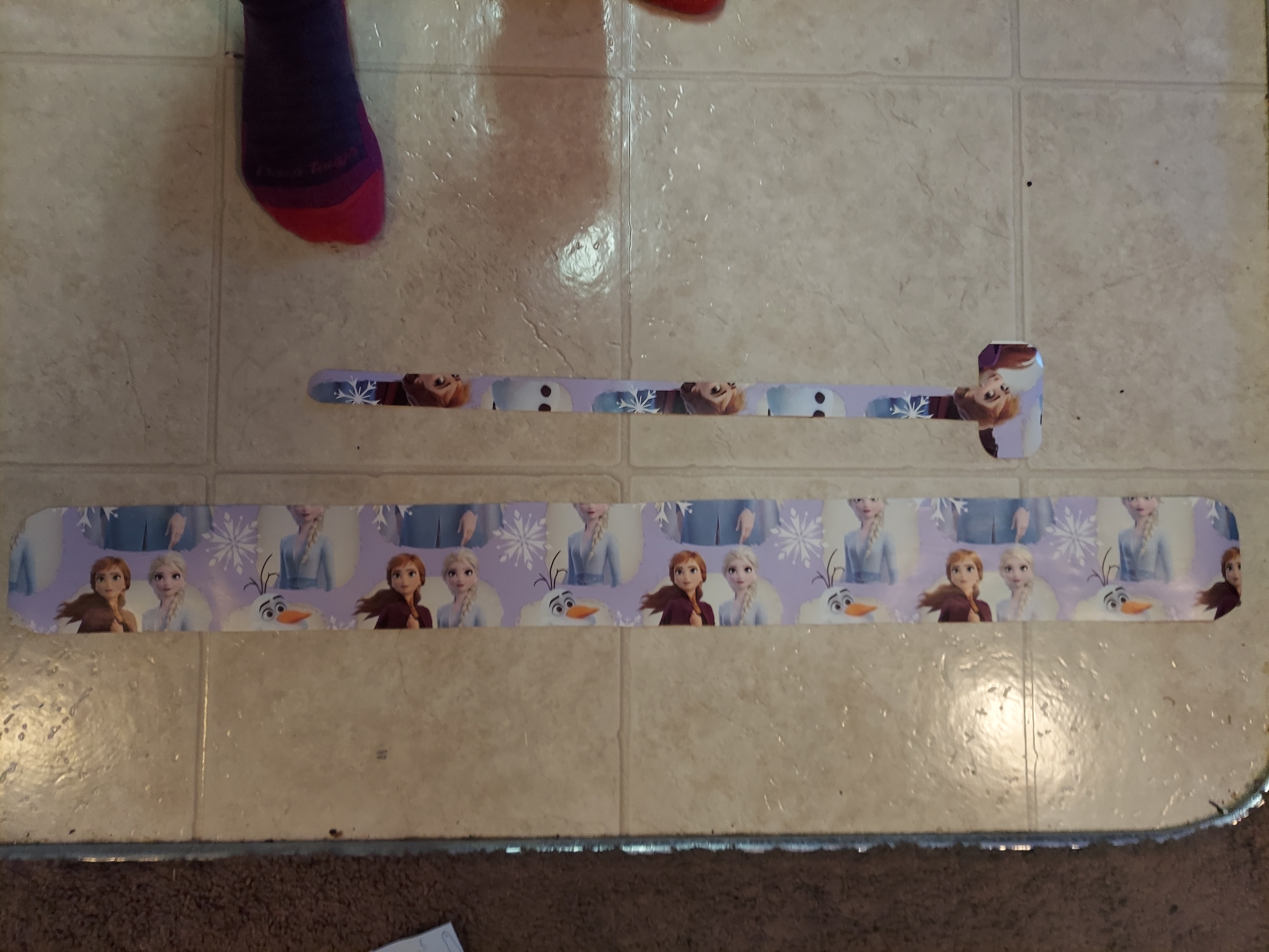 I placed the patterns on the leather in a couple different ways before I picked my spot and used scotch tape to affix the patterns to the leather. I didn’t tape them all the way around, but instead did small strategic tapes and then used a permanent marker to draw the outline on the leather itself. In the past, I’ve actually glued my pattern to the leather, but that was for patterns I could print out on a normal printer. I wasn’t going to make my Frozen-wrapping-paper patterns unusable if I wanted to try again!
