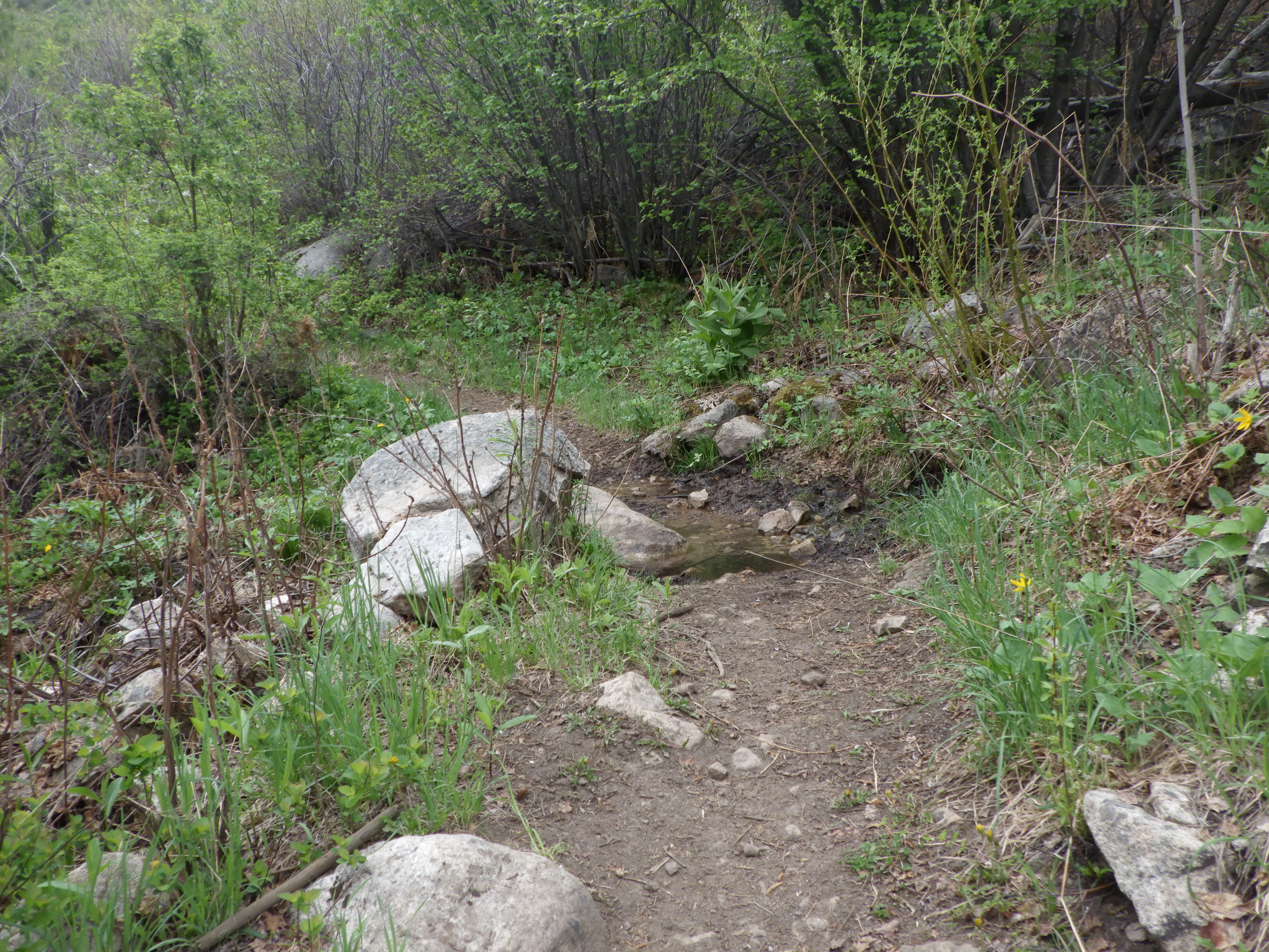 | More dry trail, even up and down stream of where it crosses the trail. |