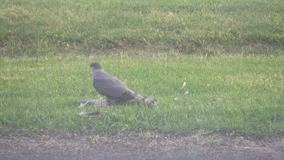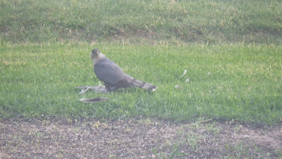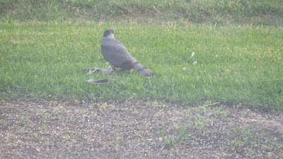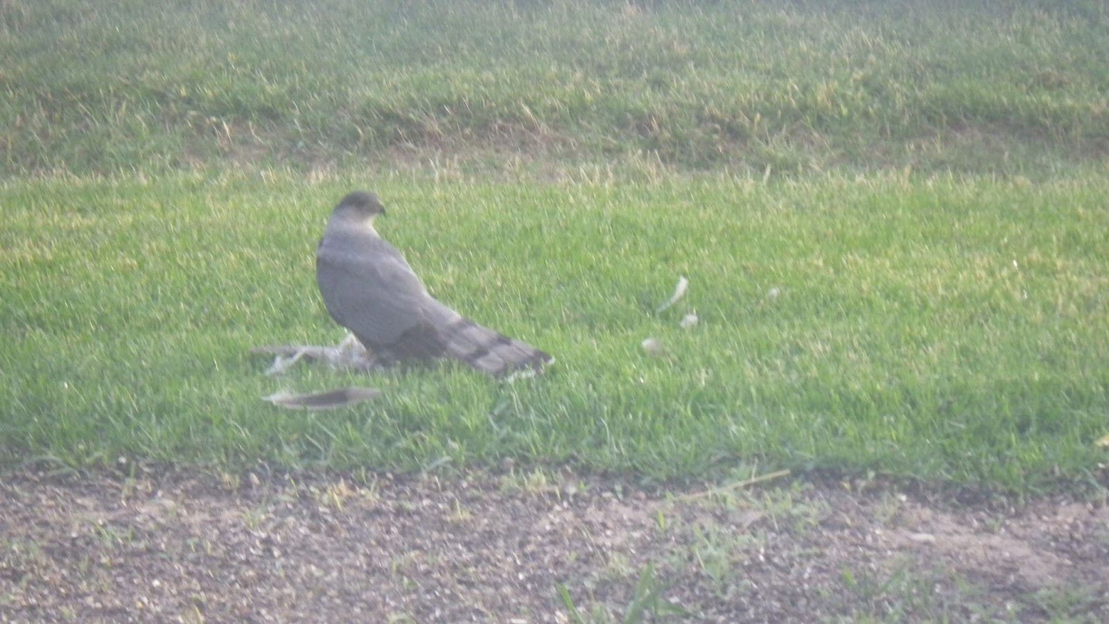 They also, in turn, provide a living buffet for the birds of prey that scout nearby. Ambrose has seen them more than I have, because he’s home more. But yesterday, I finally got a chance to get some good pictures of the fiercer birds that we feed.