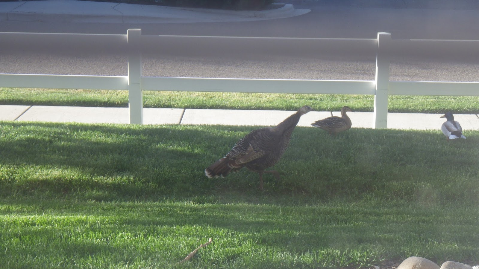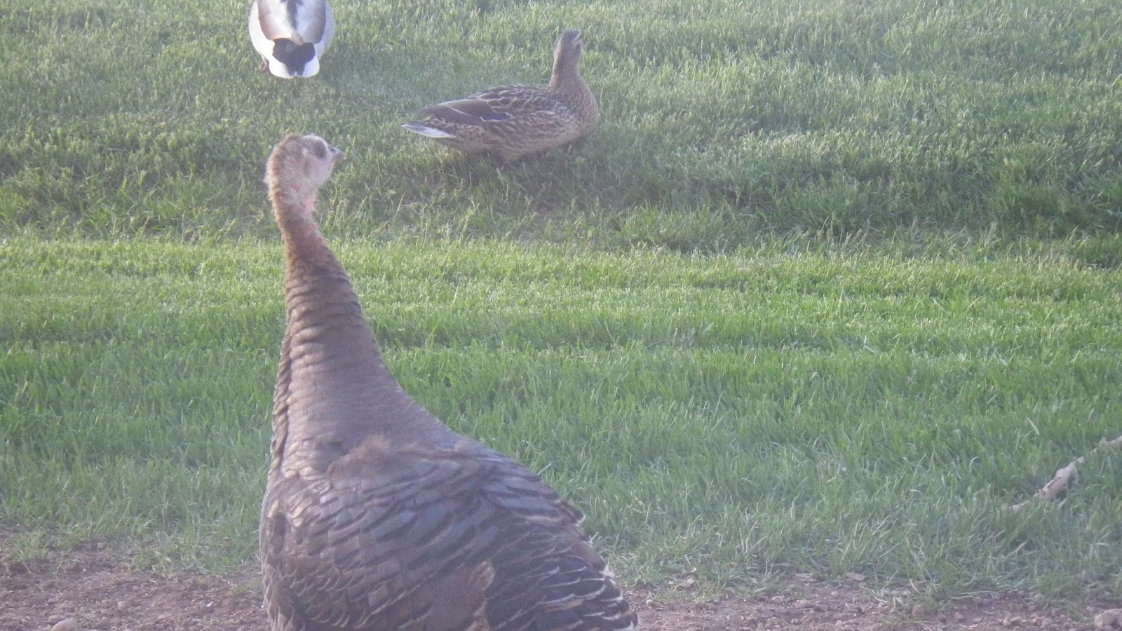 I could have looked out the window for hours, watching the turkey, watching the ducks circle the turkey in a clearly defined distance. But before too long something spooked them all.
