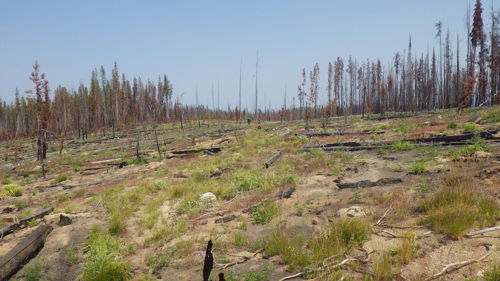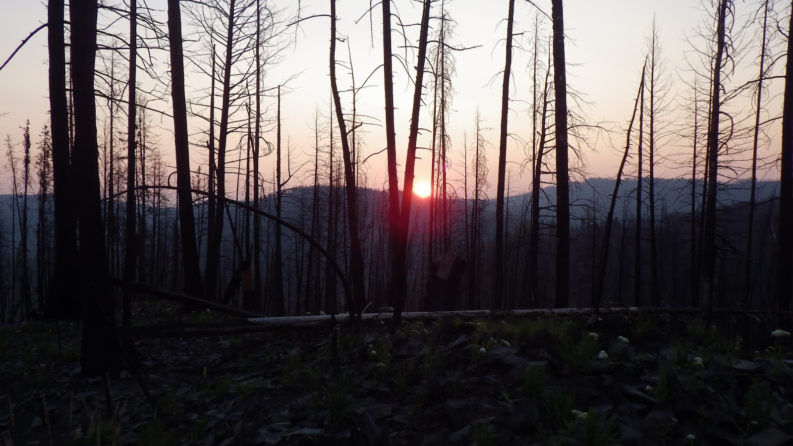 After Ambrose caught up, we all took a break, and then set off. I was in the lead for a bit, through some sections of burned out trees and a bit more climbing. But then we got to a particularly tricky snag, and I decided to wait for Ambrose to catch up so I could guide him through the easiest path rather than let him possibly waste time getting lost. We didn’t have time for anyone to get lost!