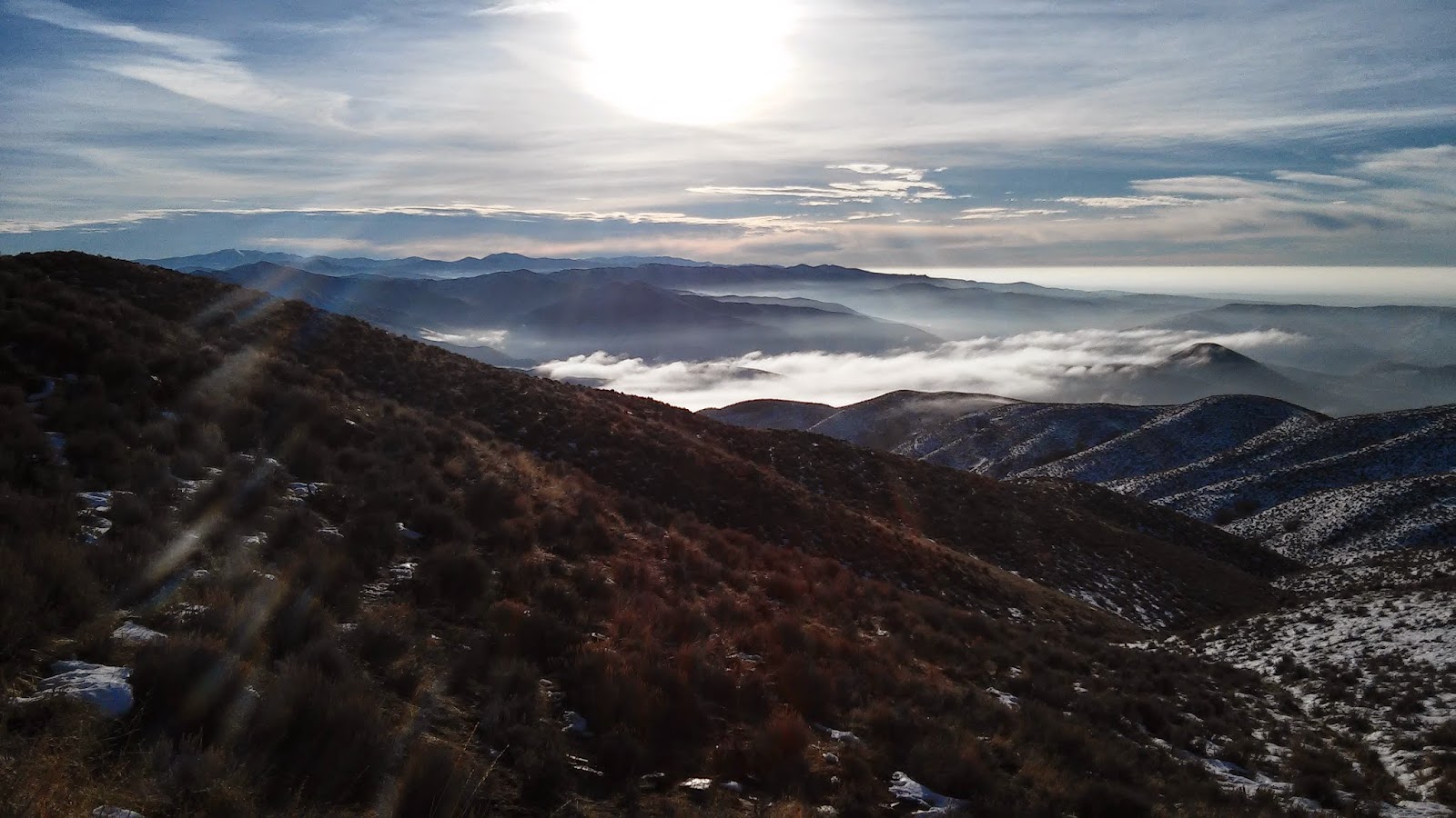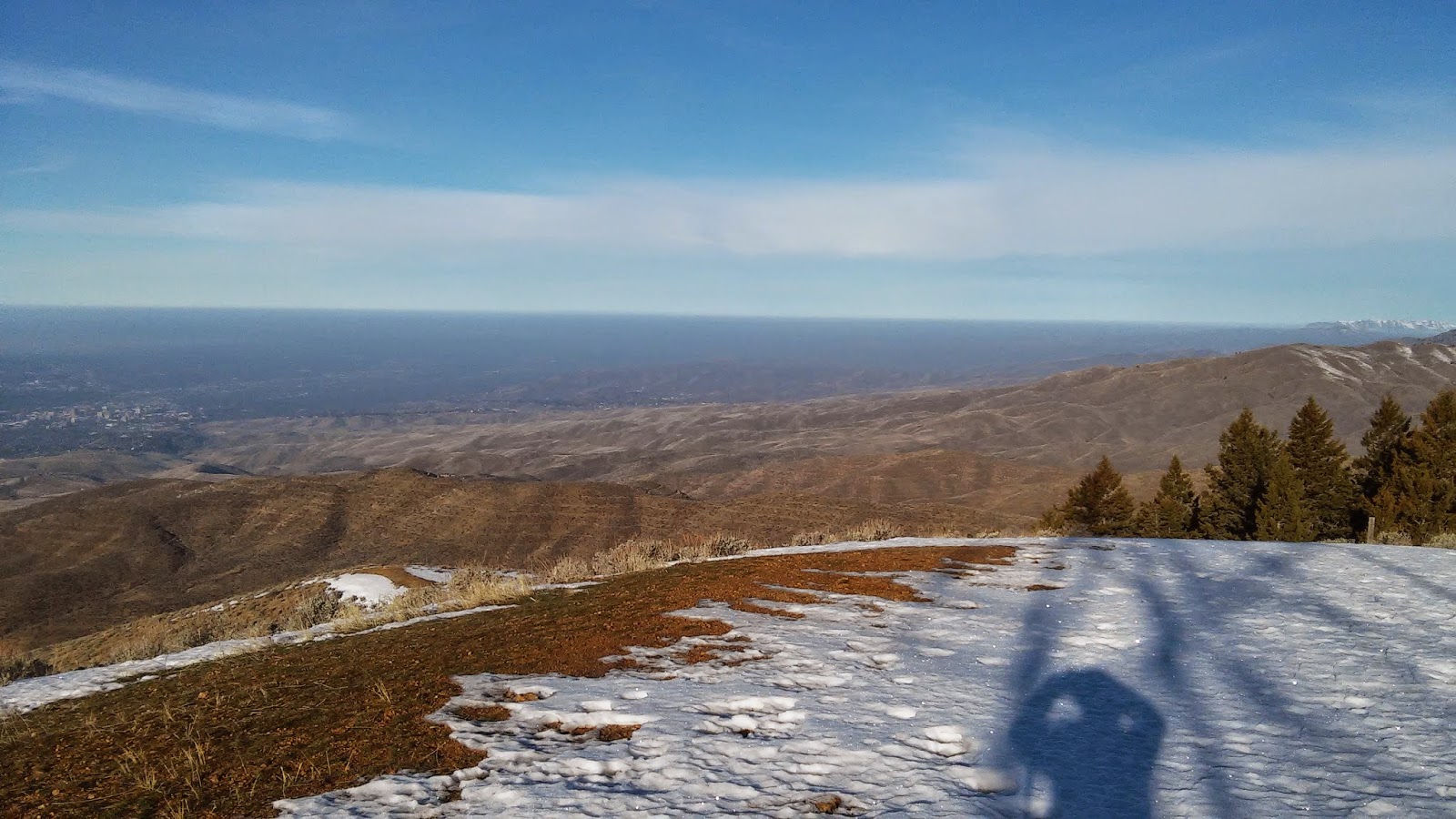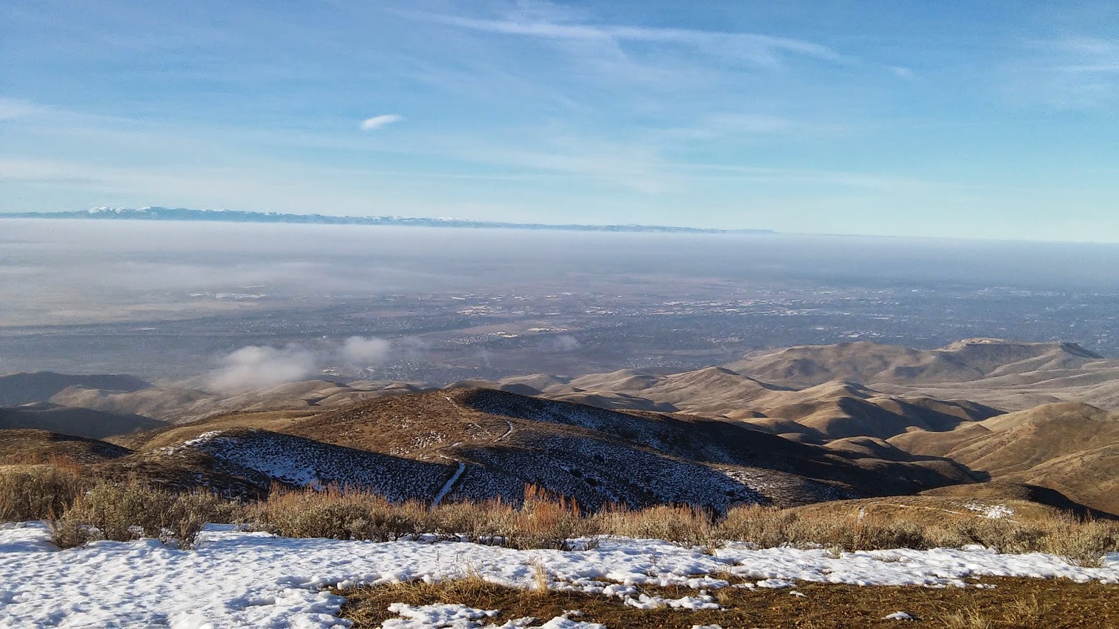 When the sun came up, it made the clouds laying in the valleys east of Boise glow. In the direction of the sun, the wild landscape seemed to suggest that I was miles from civilization, if not hundreds of miles, in a fantastical land untouched by the hand of man. A glance to the west disabused me of that fancy quickly, displaying the city sprawl under a thin layer of gray fog. Even the peak was marked by towers and solar panels.