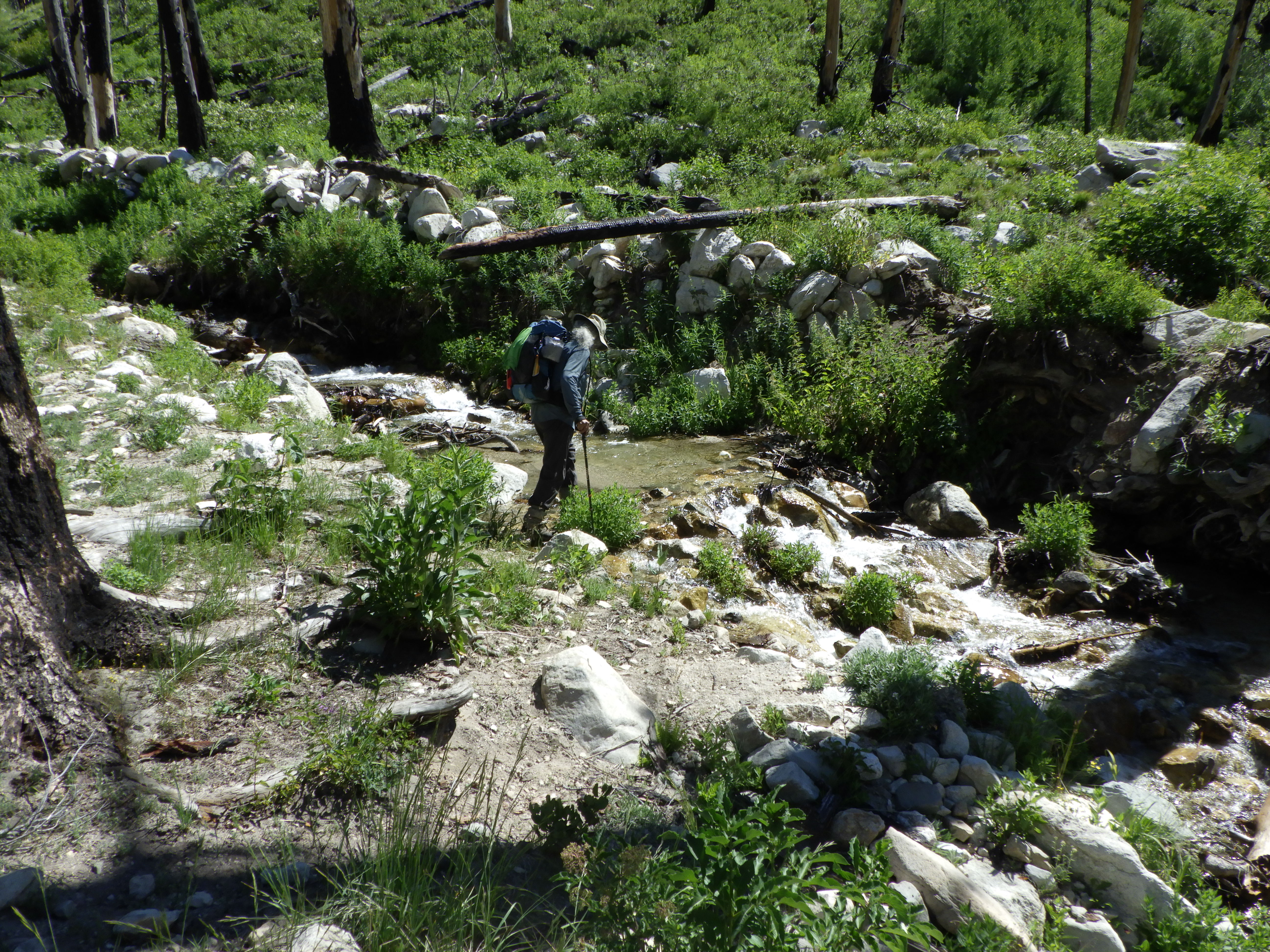 I figured my crossing of Tripod Creek with shoes on was sufficient tribute to the water spirit, because neither of us fell in.
