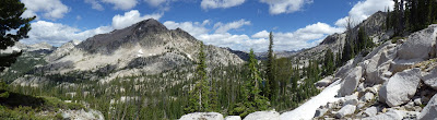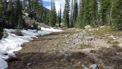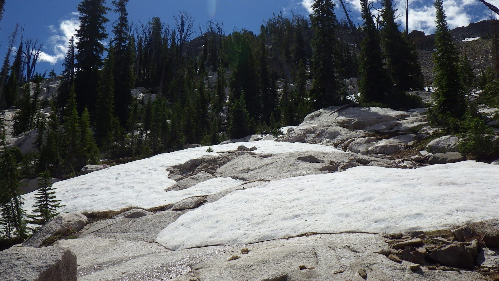 I could see Plummer Peak, but I couldn’t see the route that Ambrose said we were taking. We stopped a couple times to try and see the route. Much of the slope retained snow, but our path was supposedly behind a ridge so it wasn’t visible.