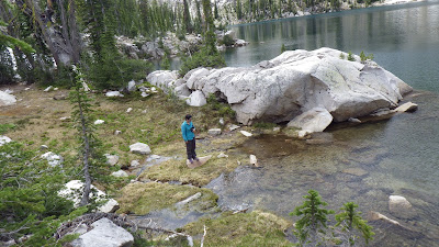 Then we went back down. I took some pictures from a high rock above Plummer, and Ambrose even took some pictures of me in front of the lake.
