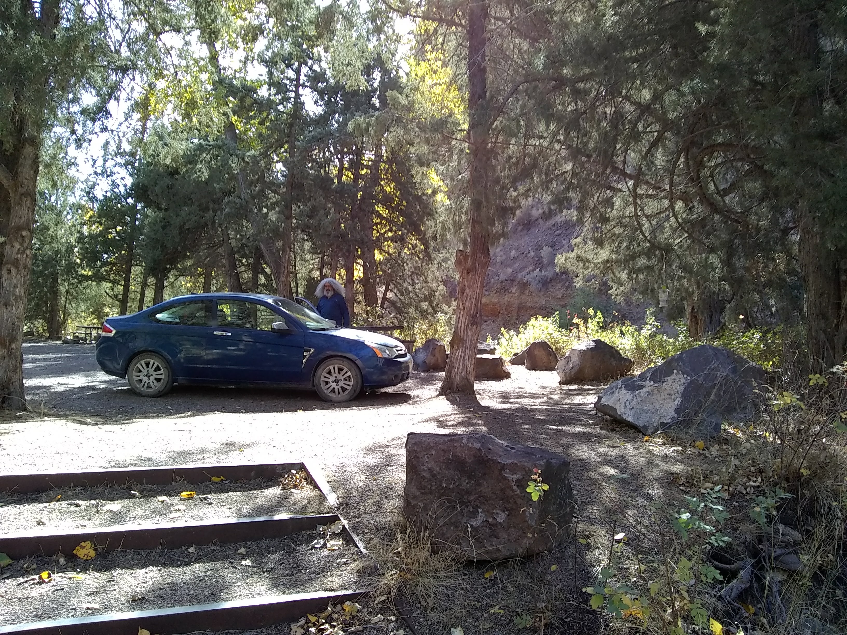 Since it tends to be a bit colder in October, we chose a lower elevation destination. Still a bit high, but not up in the mountains. We went to the Murphy Hot Springs area near the Nevada border. It’s right near the start of the Idaho Centennial Trail, so I’d been near there before, but this time we were going to drive down into the canyon and see if we could find the hot springs.