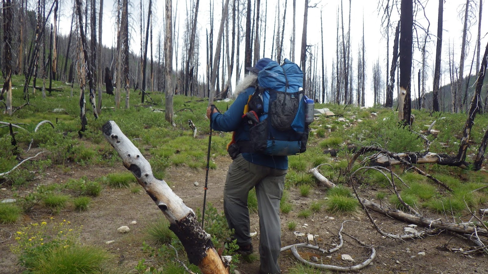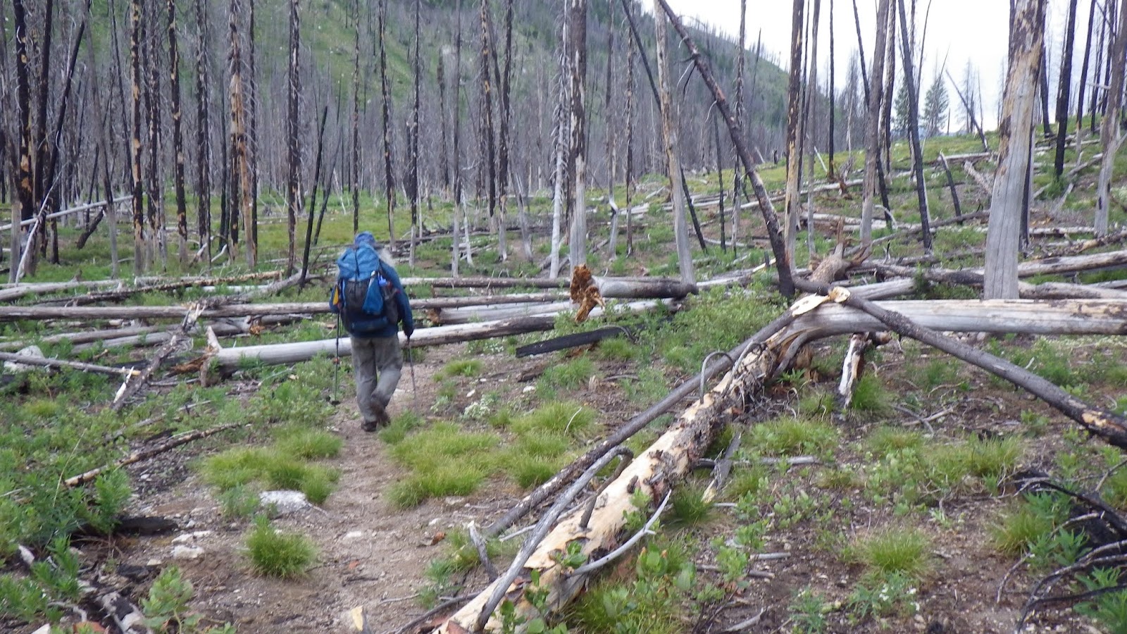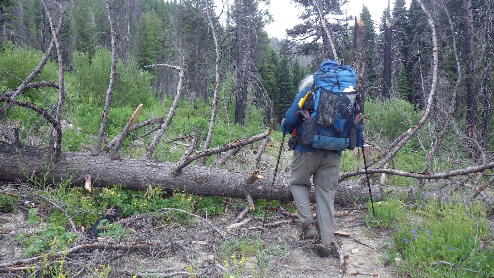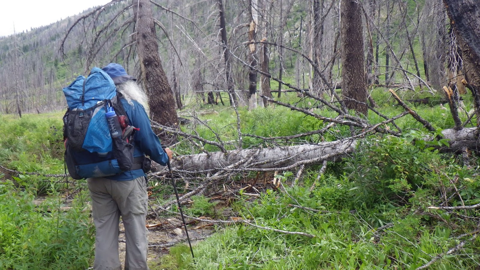 | This is probably the worst section of the trail that we traversed for downed trees across the trail. |