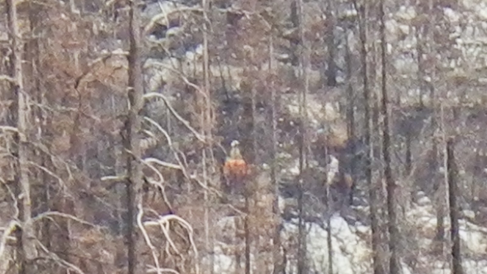 I took this picture on a switchback on the way up to High Pass on the first day of my trip. Three people riding horses, and one pack horse, had passed me on the trail earlier, headed up to Browns Lake. I had a theory that the trail to Browns Lake would be visible from the switchbacks up to High Pass, but I had no way to prove it – until I saw the bright orange that one of the riders had on their saddle, barely visible in the distance.
