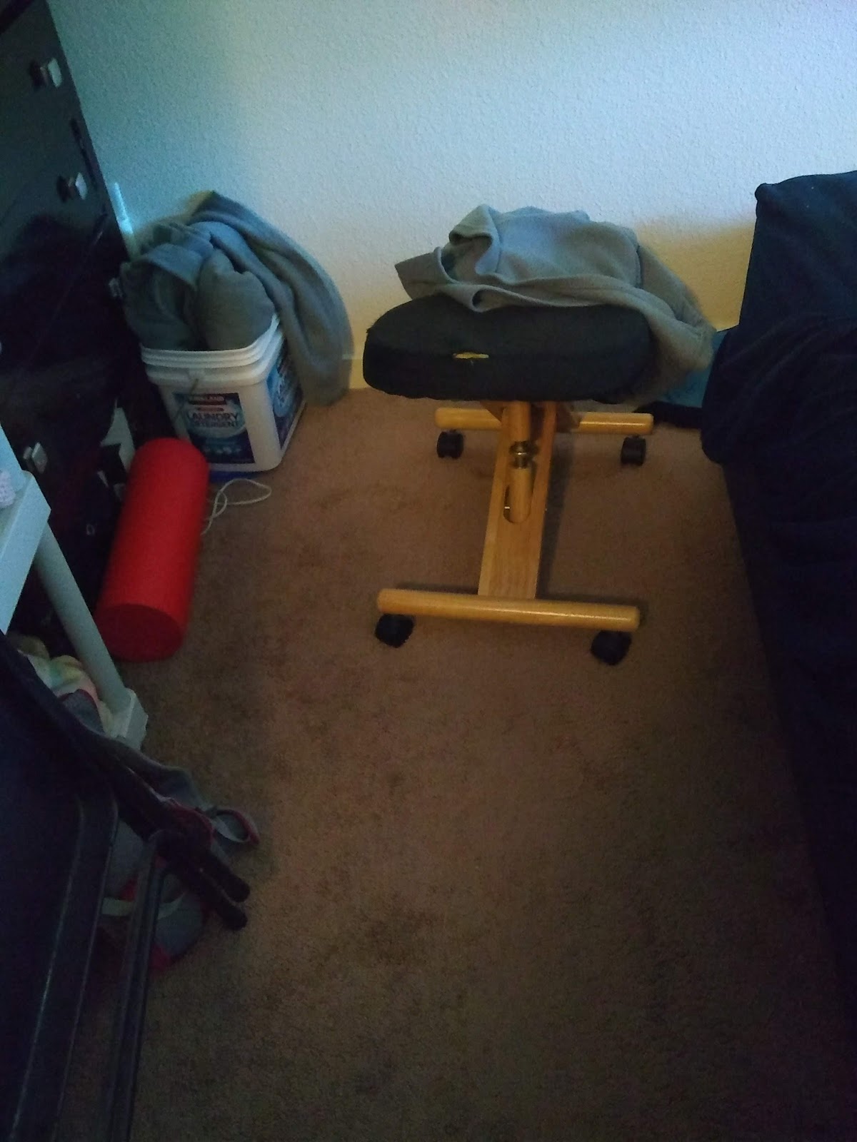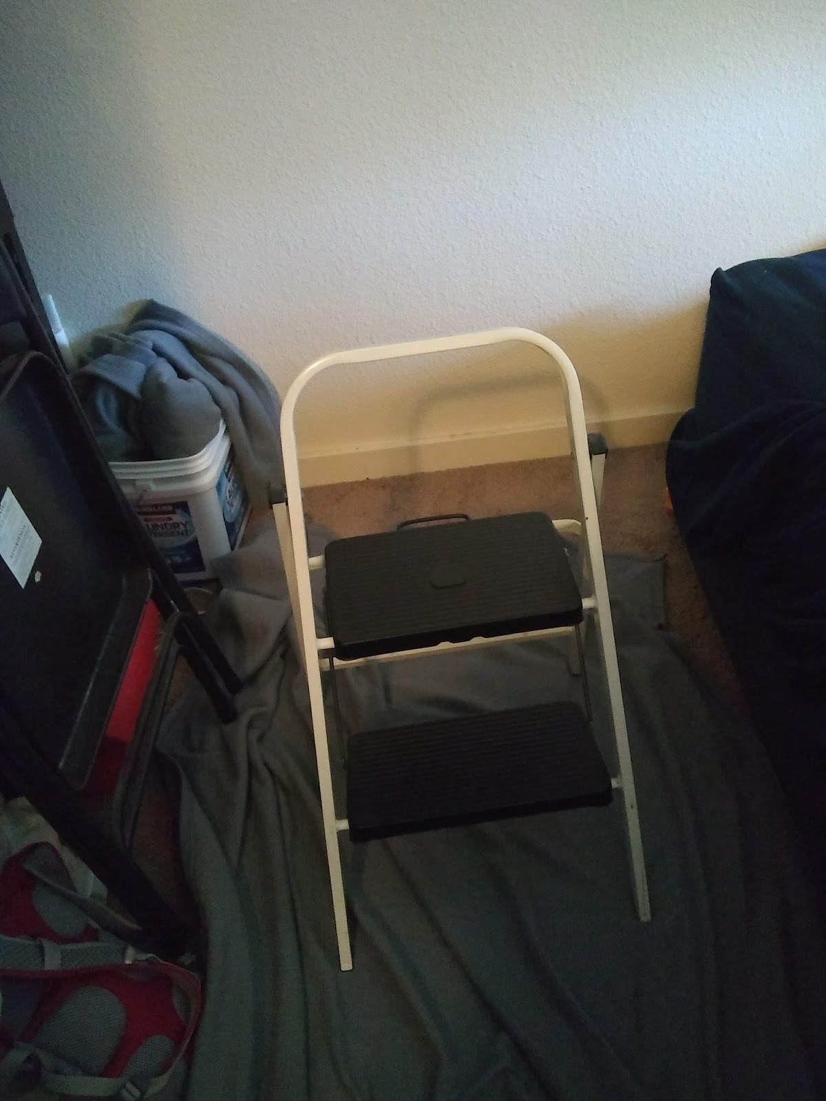 This classic folding chair could be used for chair dips, but I haven’t actually used it yet. But the moment I need it, boom, a place to do chair dips, elevated push ups, and, if I’m feeling daring, even step ups (I am not that daring).