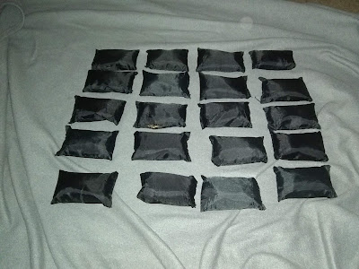 These are twenty 1 pound sandbags. I got them when I bought a weighted vest. The vest itself was pretty shitty, and I ended up getting rid of it. But I kept these little babies. They are useful for loading up a backpack for a training hike, and now they are also useful for working out from home, but not by themselves.