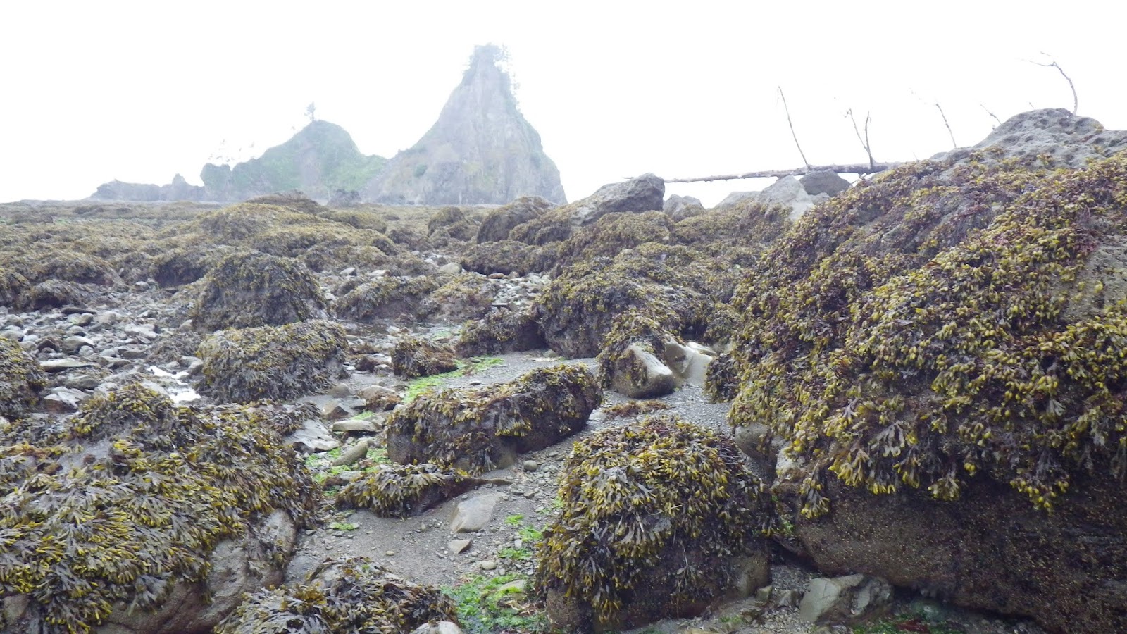 We got up at 4 am to start the second day to try and maximize our travel time around low tide. That was maybe a little too early, especially on an overcast day. Bill got his first taste of hiking over rocky coast, including areas where the options for footing were slick, wet rocks or seaweed covered, wet rocks.