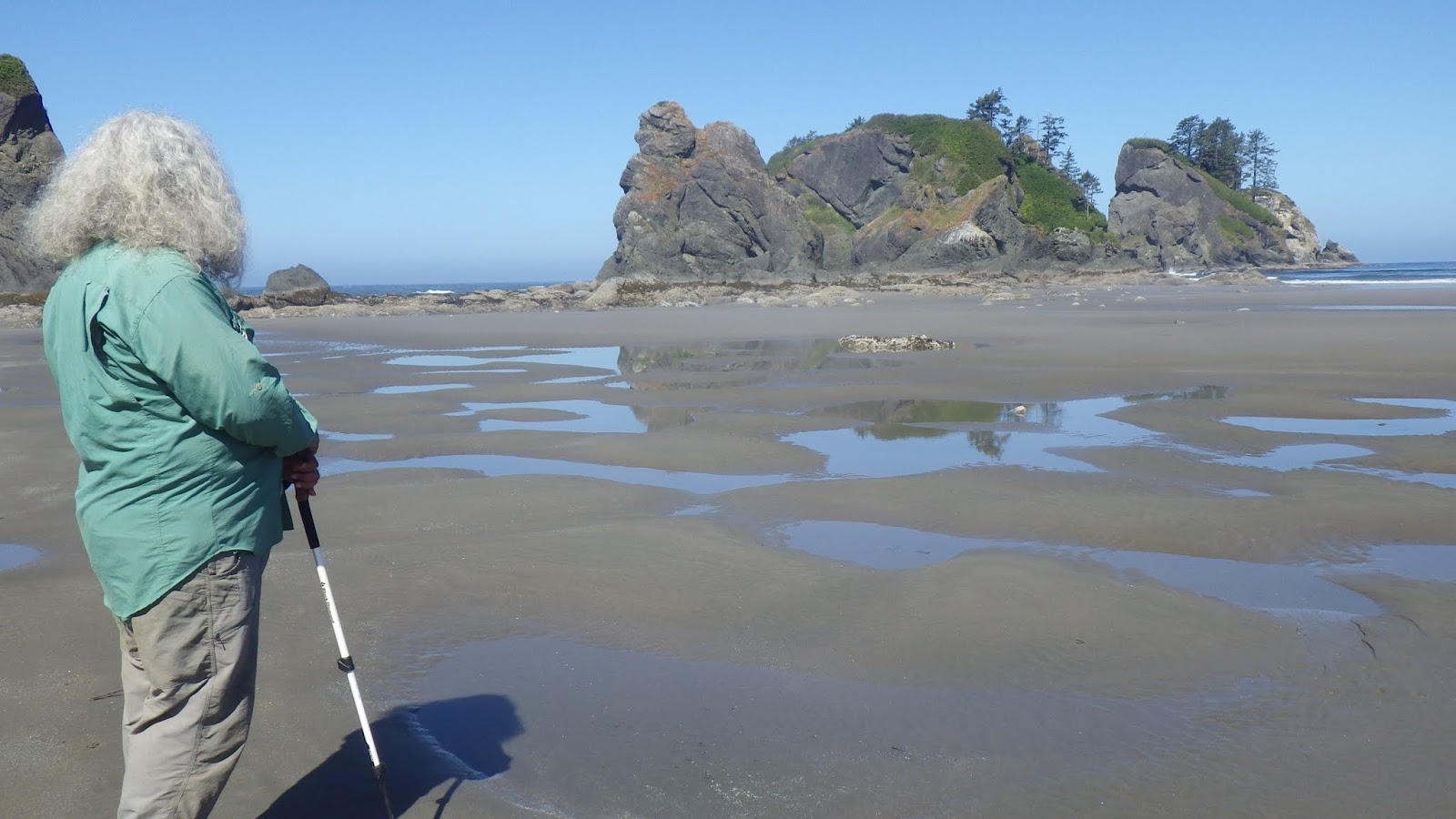 | Ambrose borrowing my trekking pole and checking out the tide pools. |
