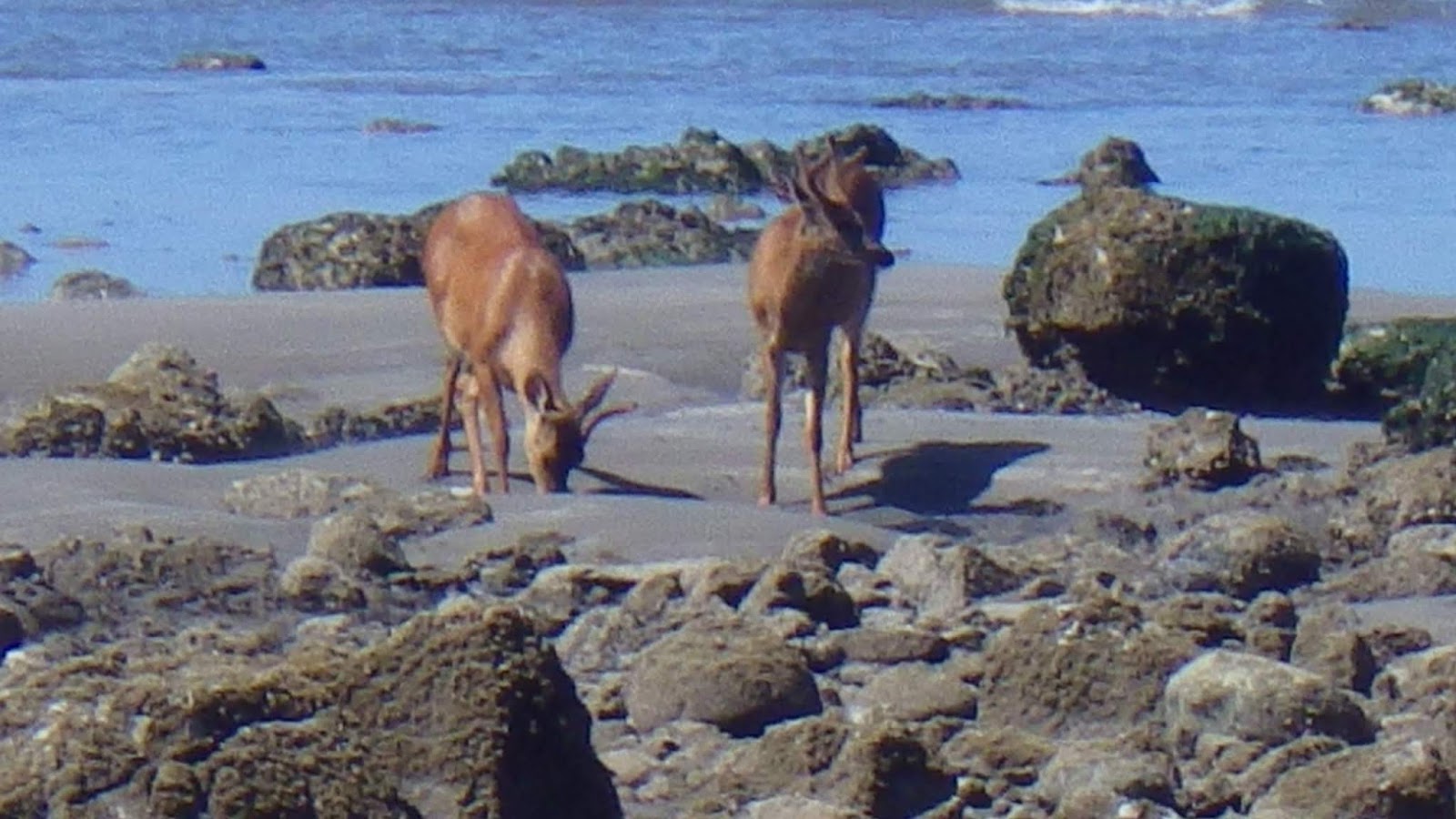 | Beach deer. They were way out where the tide was licking at the sand. |