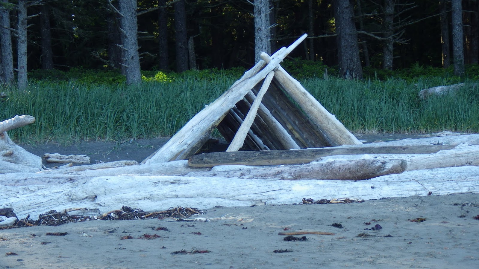 | Near Sand Point, some people have a lot of time to play with driftwood. |