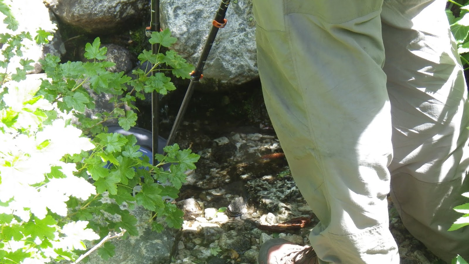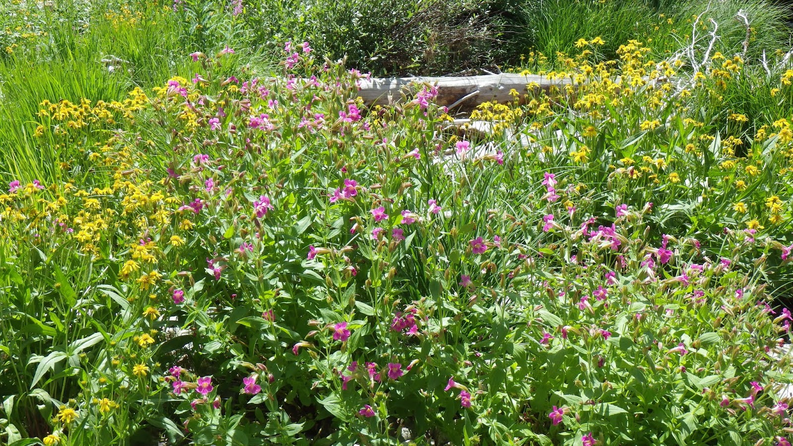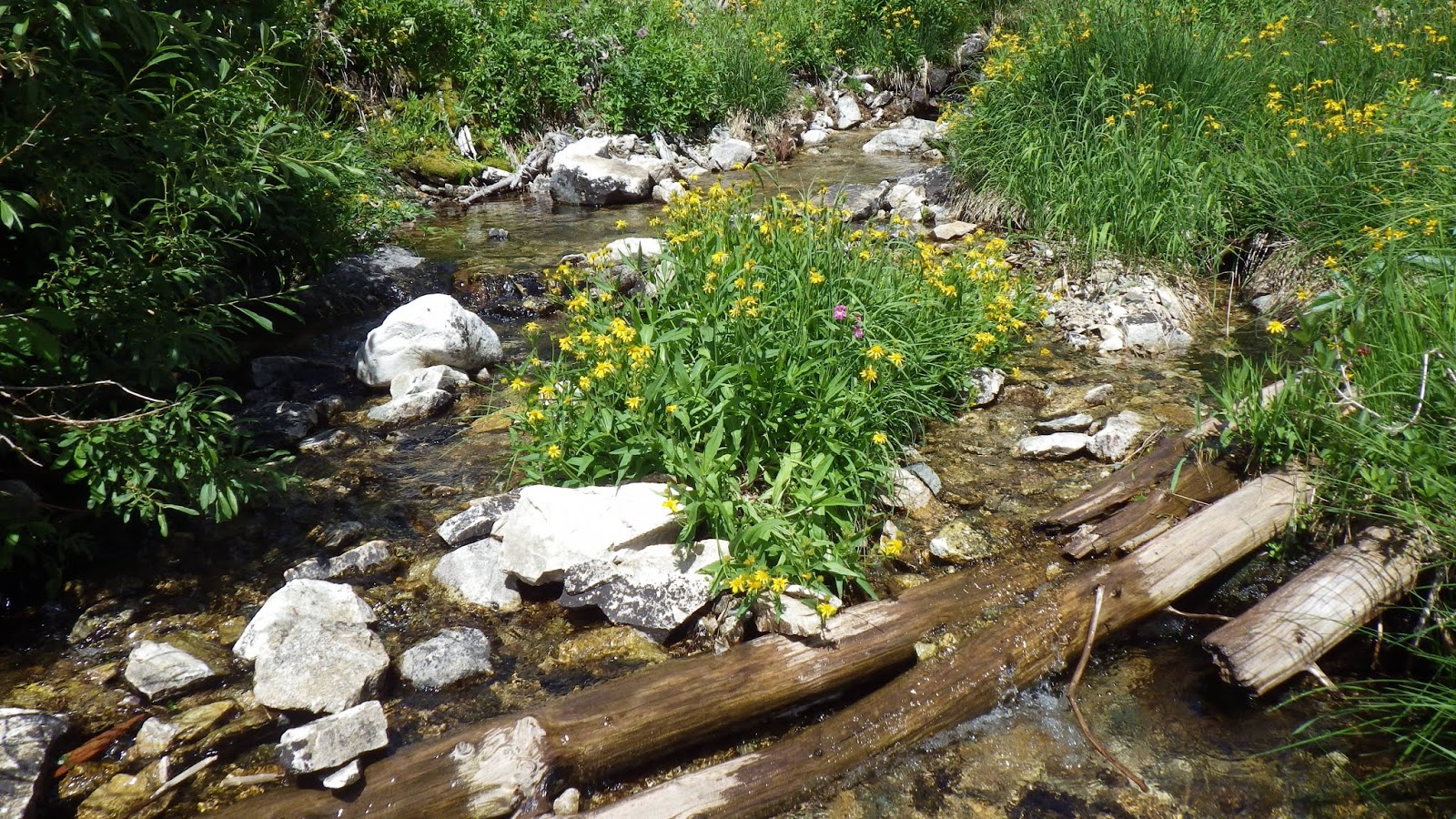 | Beautiful flowers below the waterfall at the crossing. I didn’t need to get my feet wet, but I did so I could keep cool. This day got hot. |