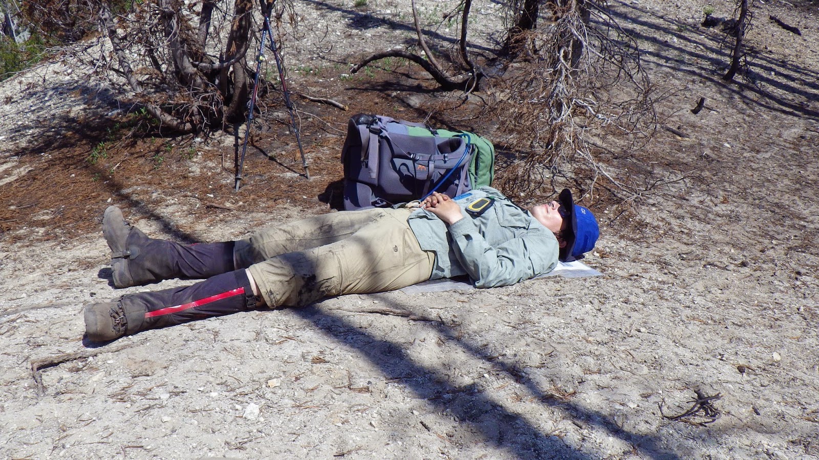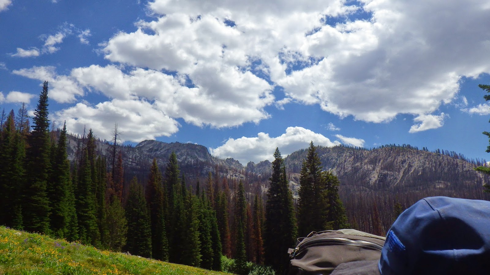Not long after that, I reached the couch (which is another name for a saddle, or the low point between peaks that is also a high point between valleys). Naturally, I dumped my pack on the ground and laid myself down on it while I waited for Ambrose to arrive. Once I heard him getting close, I yelled out to tell him that it wasn’t much farther.
