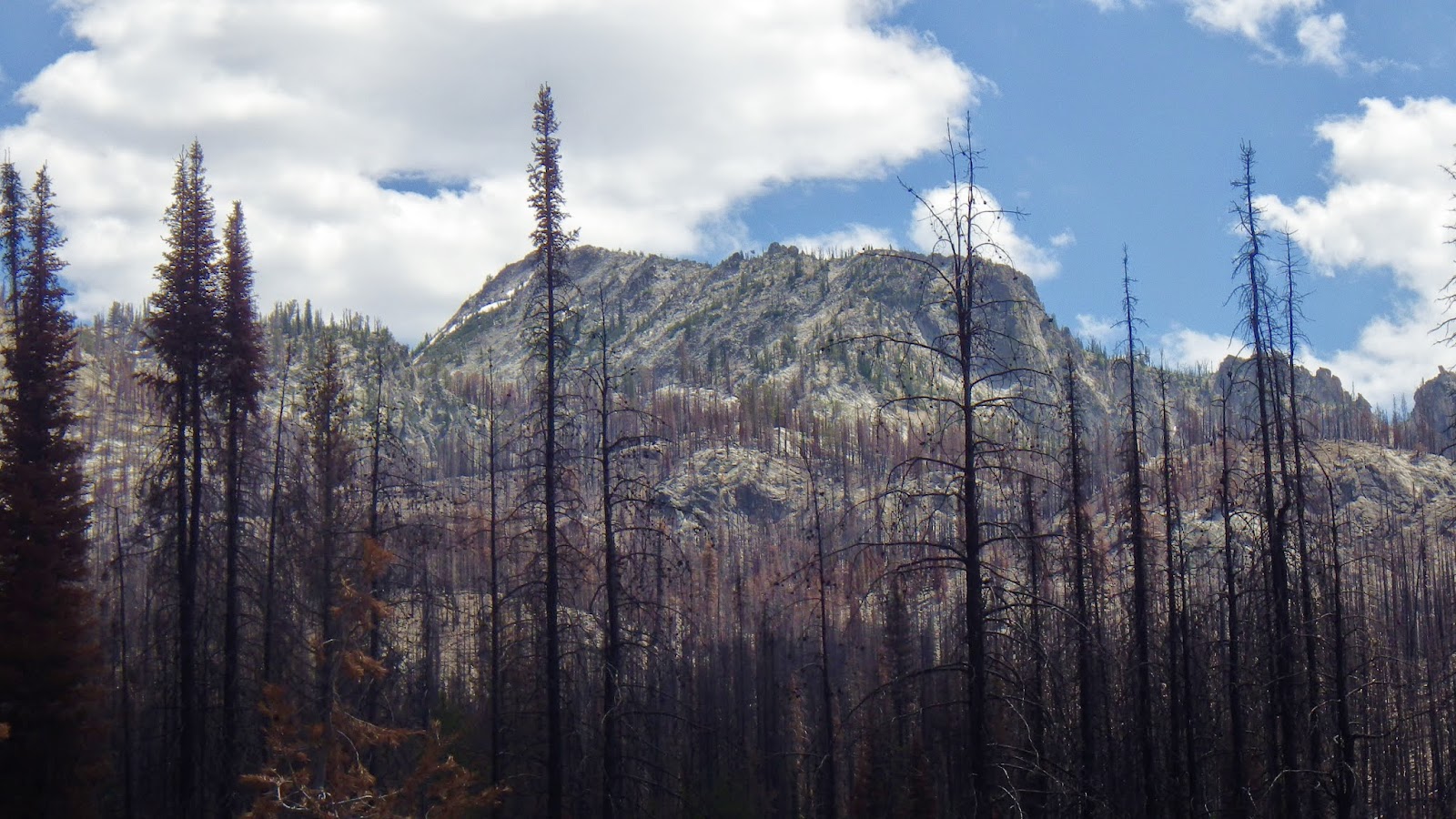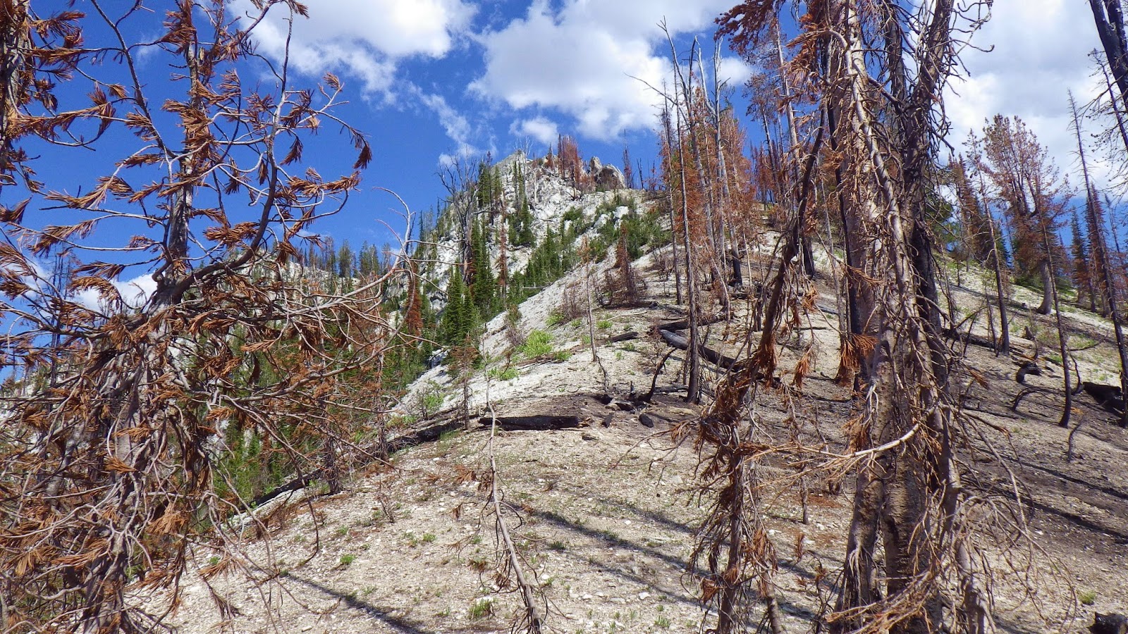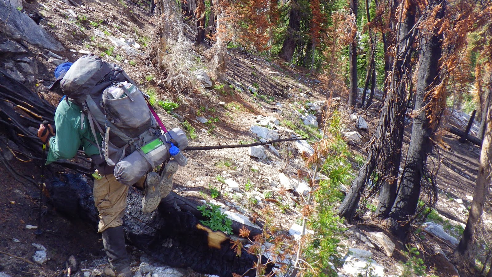 One thing that was nice about hiking up switchbacks in a burned out area was that it was really easy for me to keep an eye on Ambrose. I tried to stay no more than one switchback above him. A few times, when I had to maneuver past a fallen log or tricky rocks, I would watch him cross the same obstacle from above to make sure he made it through alright.