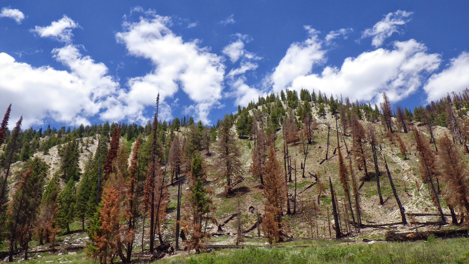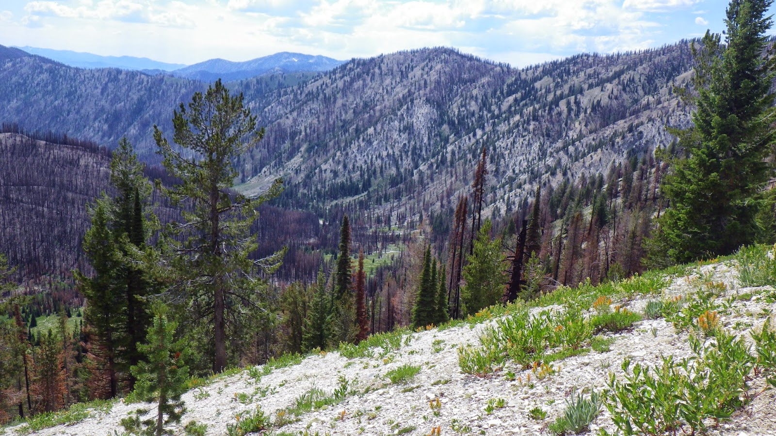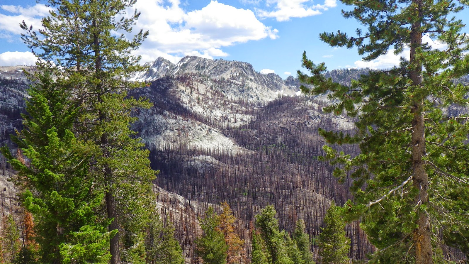 One thing that was nice about hiking up switchbacks in a burned out area was that it was really easy for me to keep an eye on Ambrose. I tried to stay no more than one switchback above him. A few times, when I had to maneuver past a fallen log or tricky rocks, I would watch him cross the same obstacle from above to make sure he made it through alright.