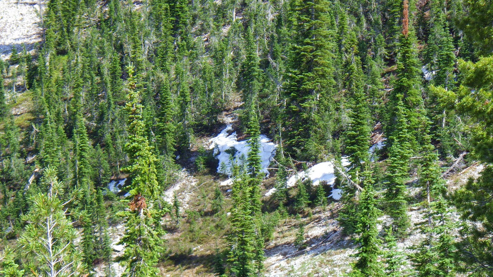 It was a good thing that I stopped there rather than continuing up in the hopes of a better view at the next switchback, because the trail left that ridge entirely after that. I traversed several ridges before the switchbacking start up again. I had to slow down there a little bit so I could still stay in sight. Mostly.