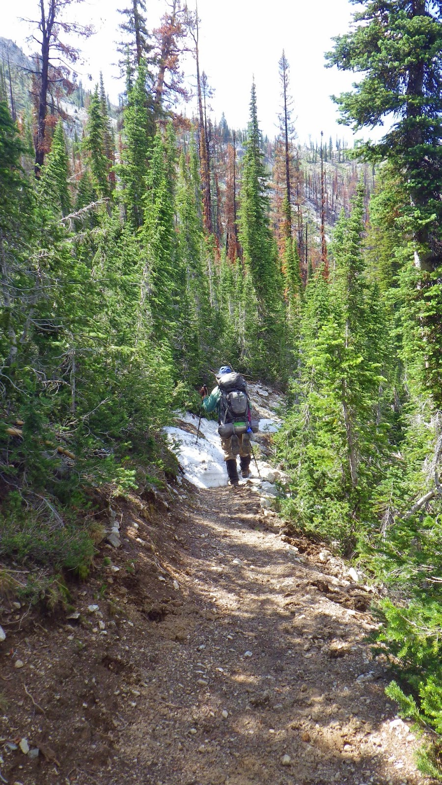 Neither of us made much effort to move off of the trail. There was plenty of room to get around us though. They hiked by, the first one saying either that we were the first people he had seen in four days, or for days, depending on whether you ask Ambrose or me (for days). The second one seemed to be resentful of our presence, but maybe he was just tired. They had been at Browns Lake.