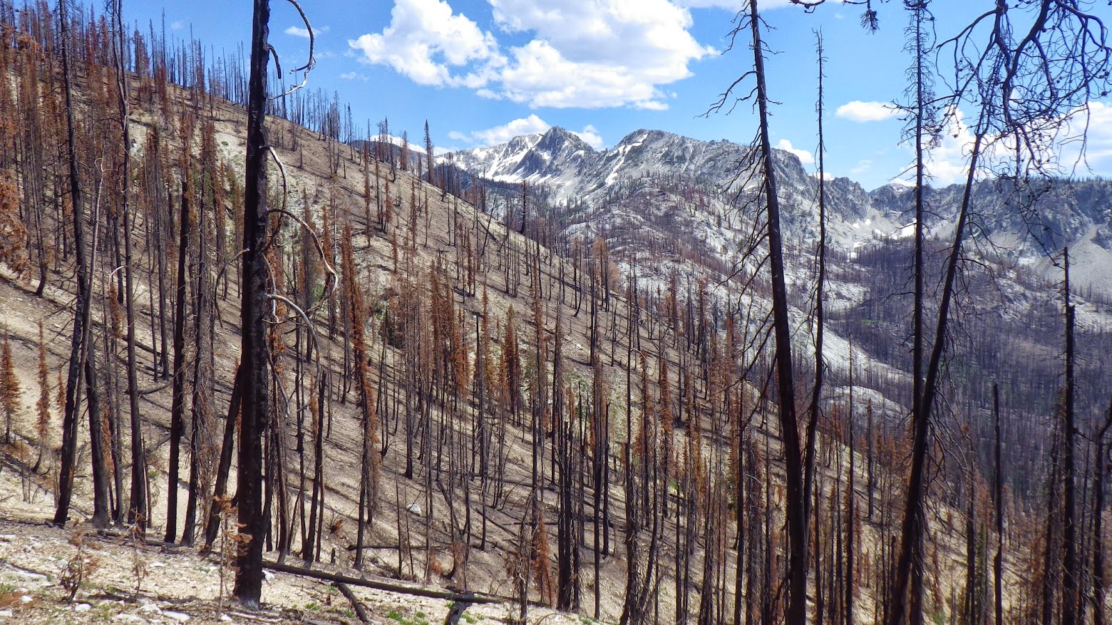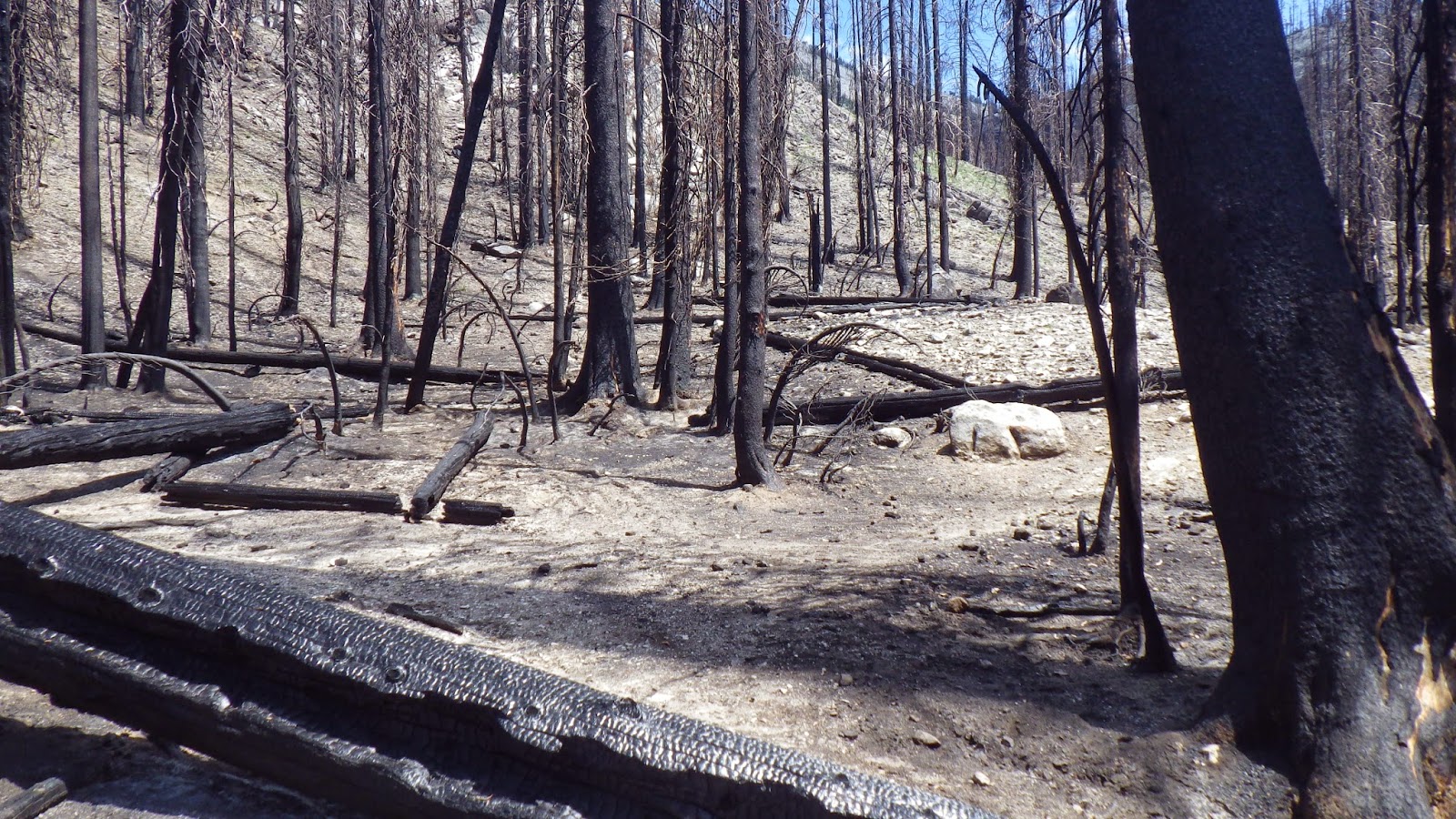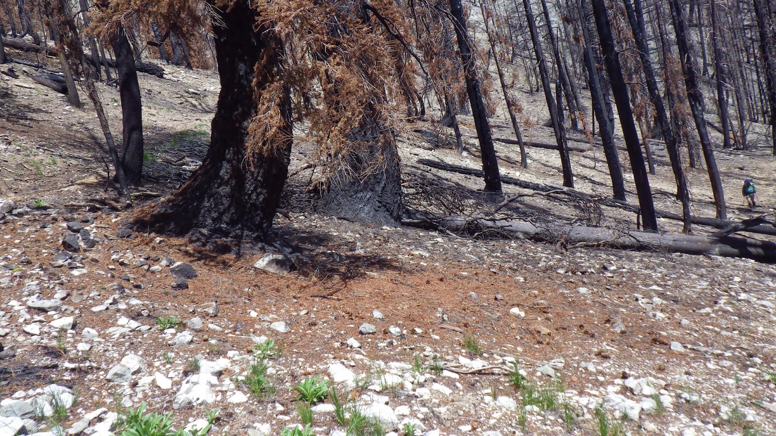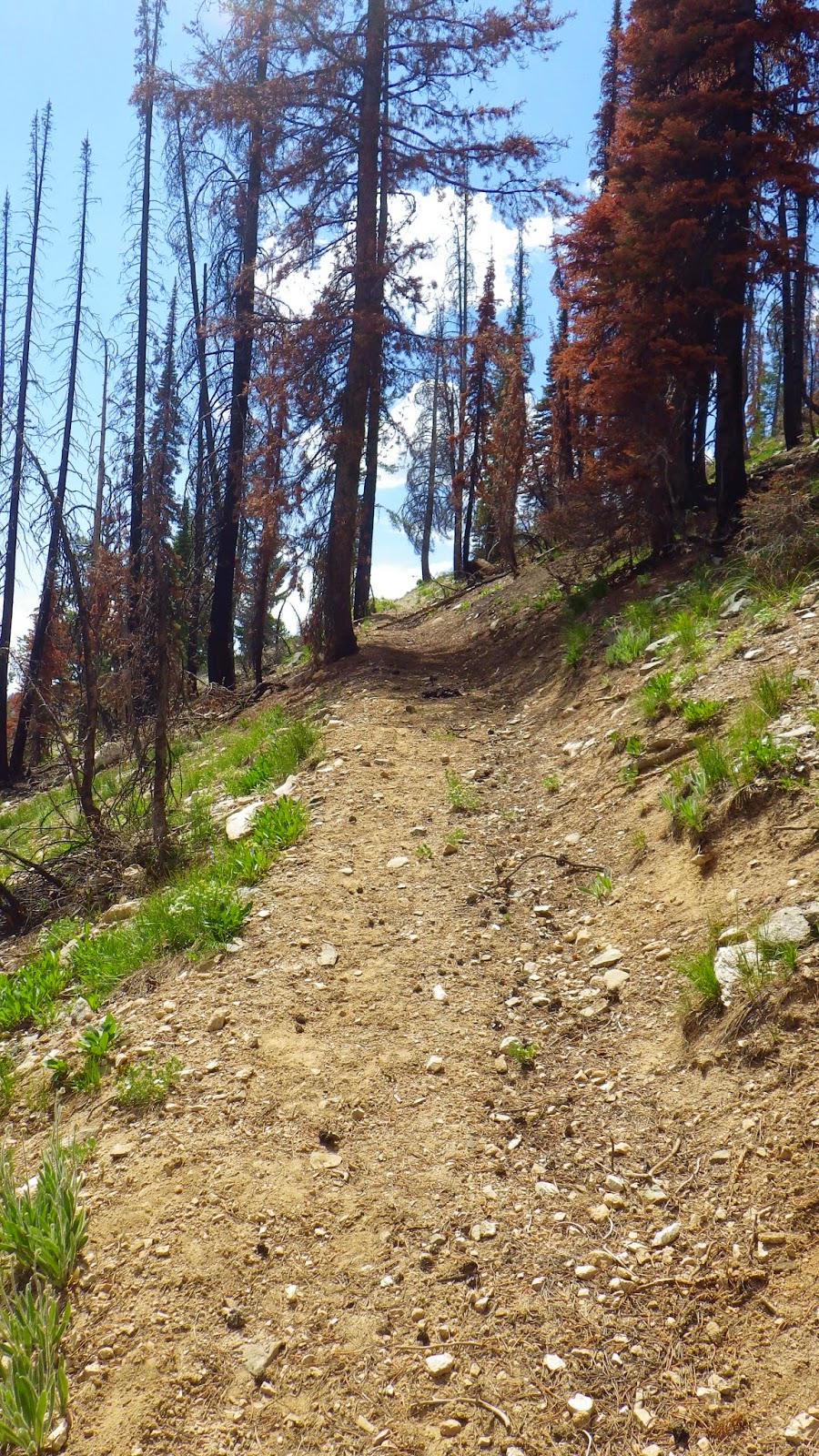 Now we were headed up trail that we had never before walked. We were in the midst of a burned forest and we knew from the map that we were about to hit a zipper of a switchback.