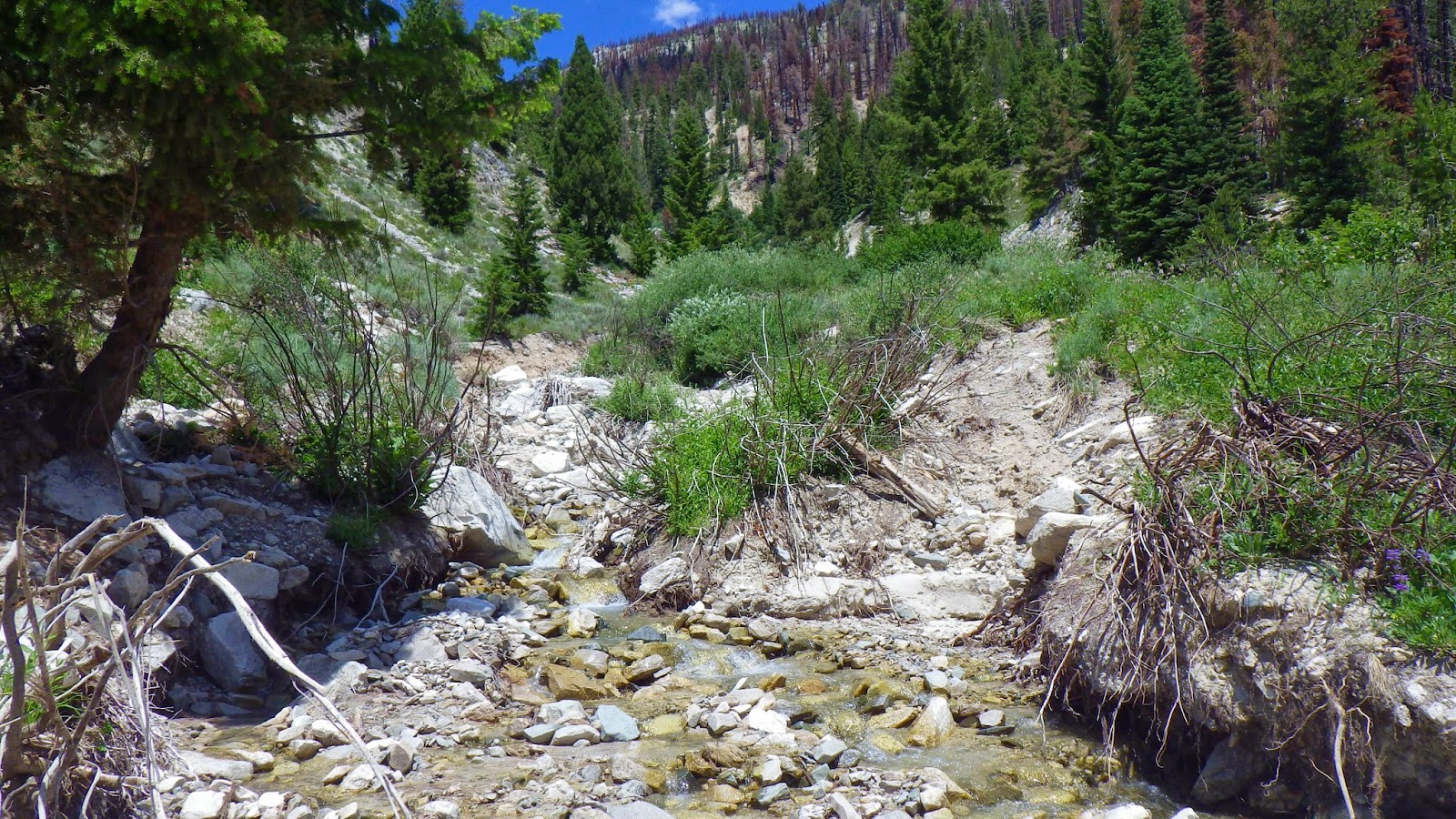 He chose the latter. When we got back to the water with our water bags and the cook pot to help fill them, Ambrose used the pot, while I used gravity to fill my bag. To the right of the trail, the water’s path dropped about four feet, and there was room for me to place the mouth of my water bag in the stream. Everything was fine until I needed the top to the bag. It was closer to Ambrose than it was to me, and so I asked him to pass it.