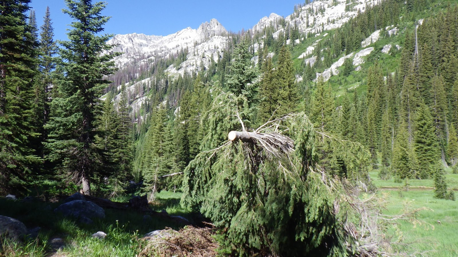 We walked to the Nanny Creek site together. Ambrose noticed first that the fire pit marring the site was a new one. Someone had dug out the old one and then, presumably someone else had added a new one. Fire is not allowed in the wilderness except in a fire pot or fire blanket, so fire rings are no-nos. Ambrose decided he would figure out a way to report it to the rangers (and he did).