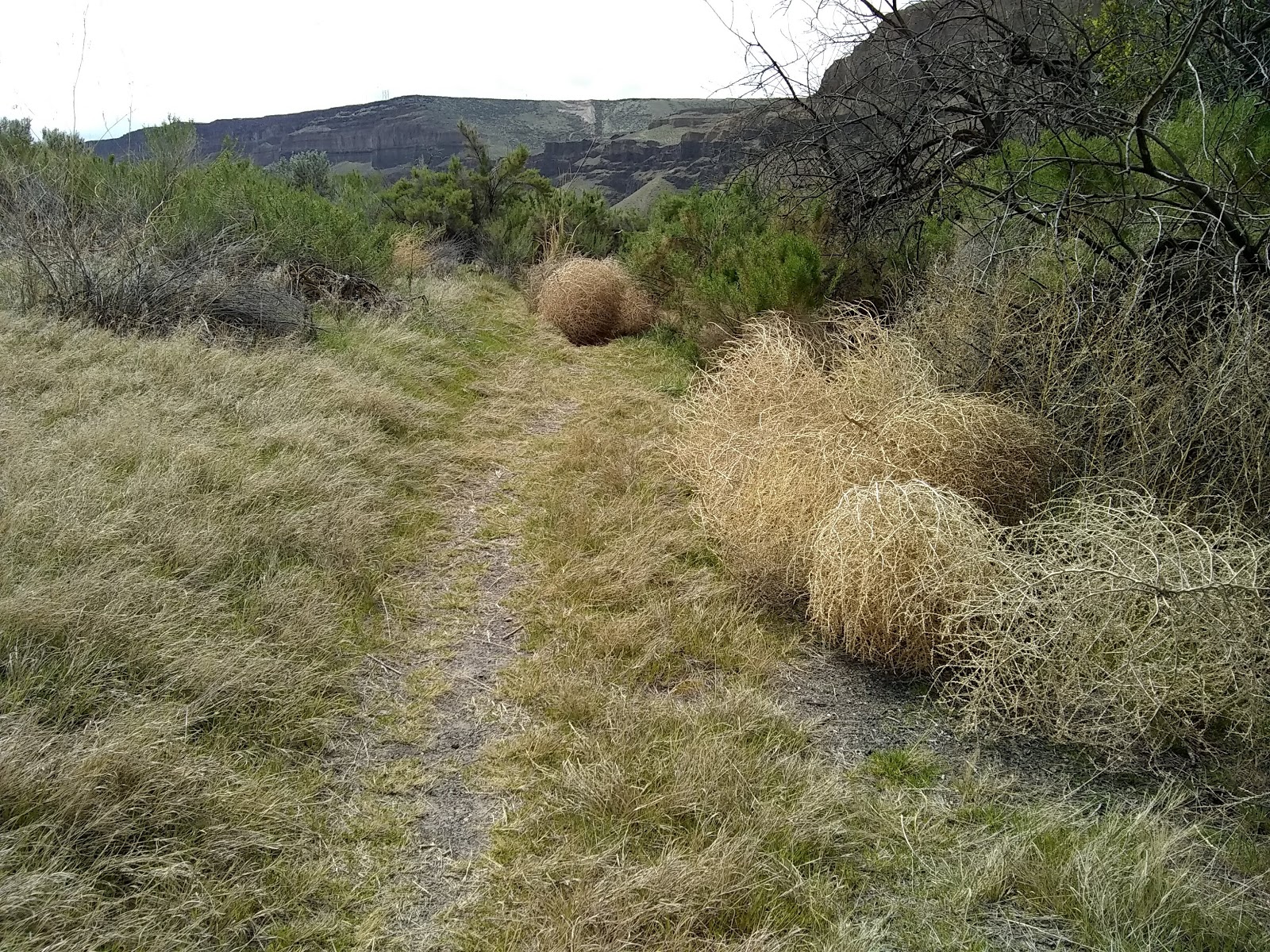 | The trail starts fairly wide, but vehicles aren’t allowed here. |