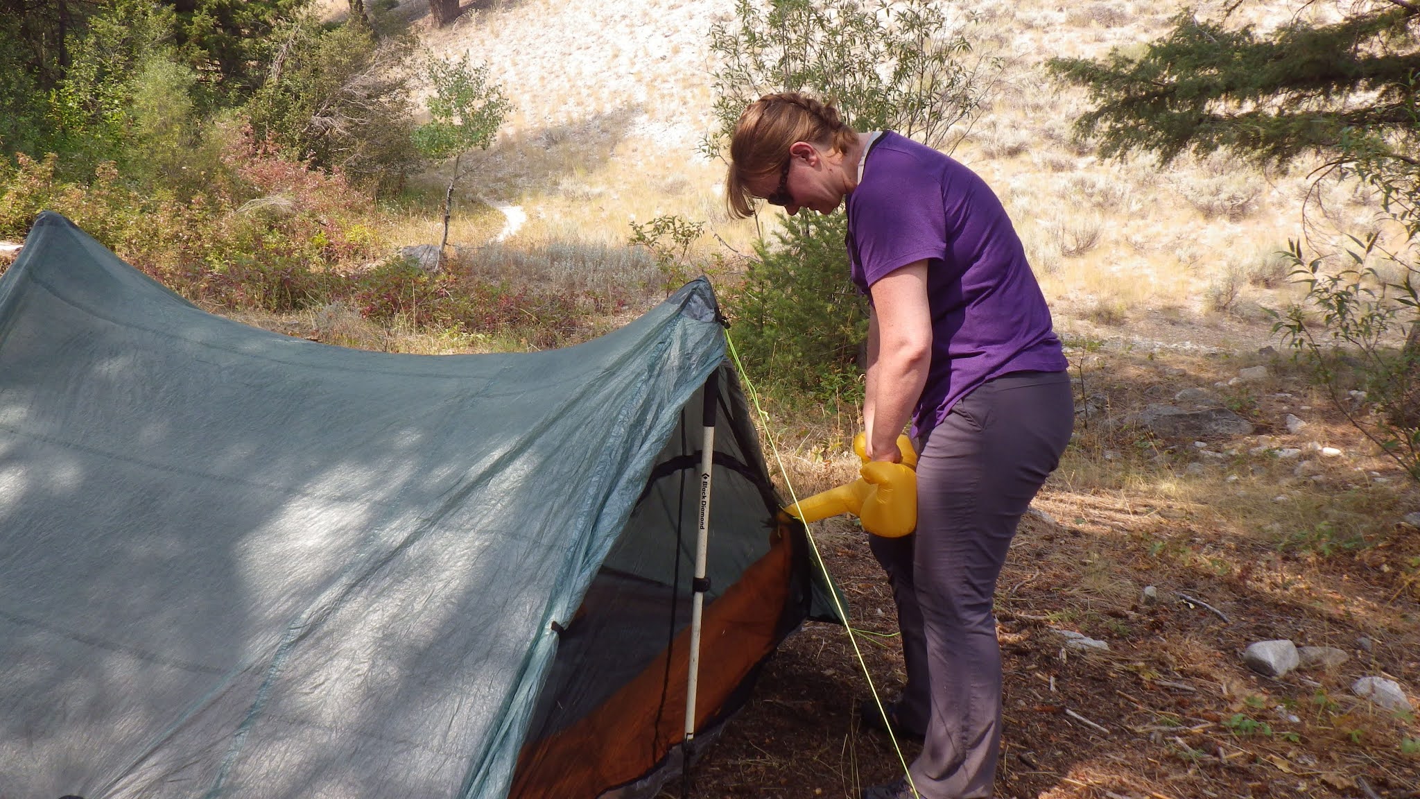 We chose the back campsite and I started leading her through camp chores. I tried to be conscious of talking through the steps for the chores, and I included her in them. Like with inflating the sleeping pads; it turns out that my new sleeping pad’s pump bag fits on my old sleeping pad, so neither of us had to blow, but we each inflated our own. Once that stuff was complete, on to getting water. I demonstrated how the life straw works, and how the Sawyer filter works. We used the Sawyer for this trip since it is easier to get water in bulk that way, but the life straw was her personal filtration and she needed to know how to use it.