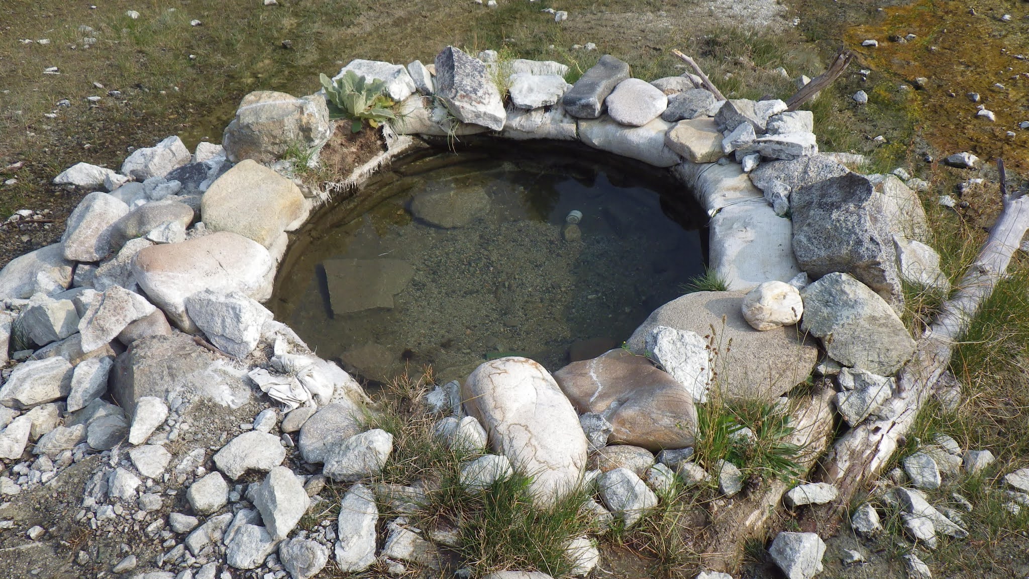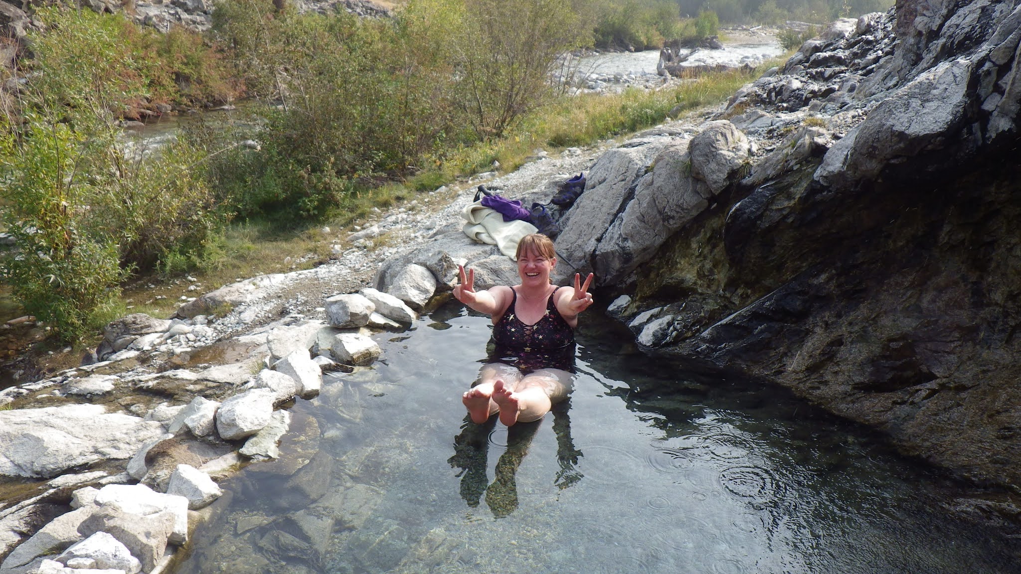 Then, when it had cooled a bit, we headed over to the hot springs. I must admit, I hadn’t been there in a while, so there were new developments. New little trails down to the springs, a new tub… I took the wrong little trail down, but did point out which she should take if she comes back.