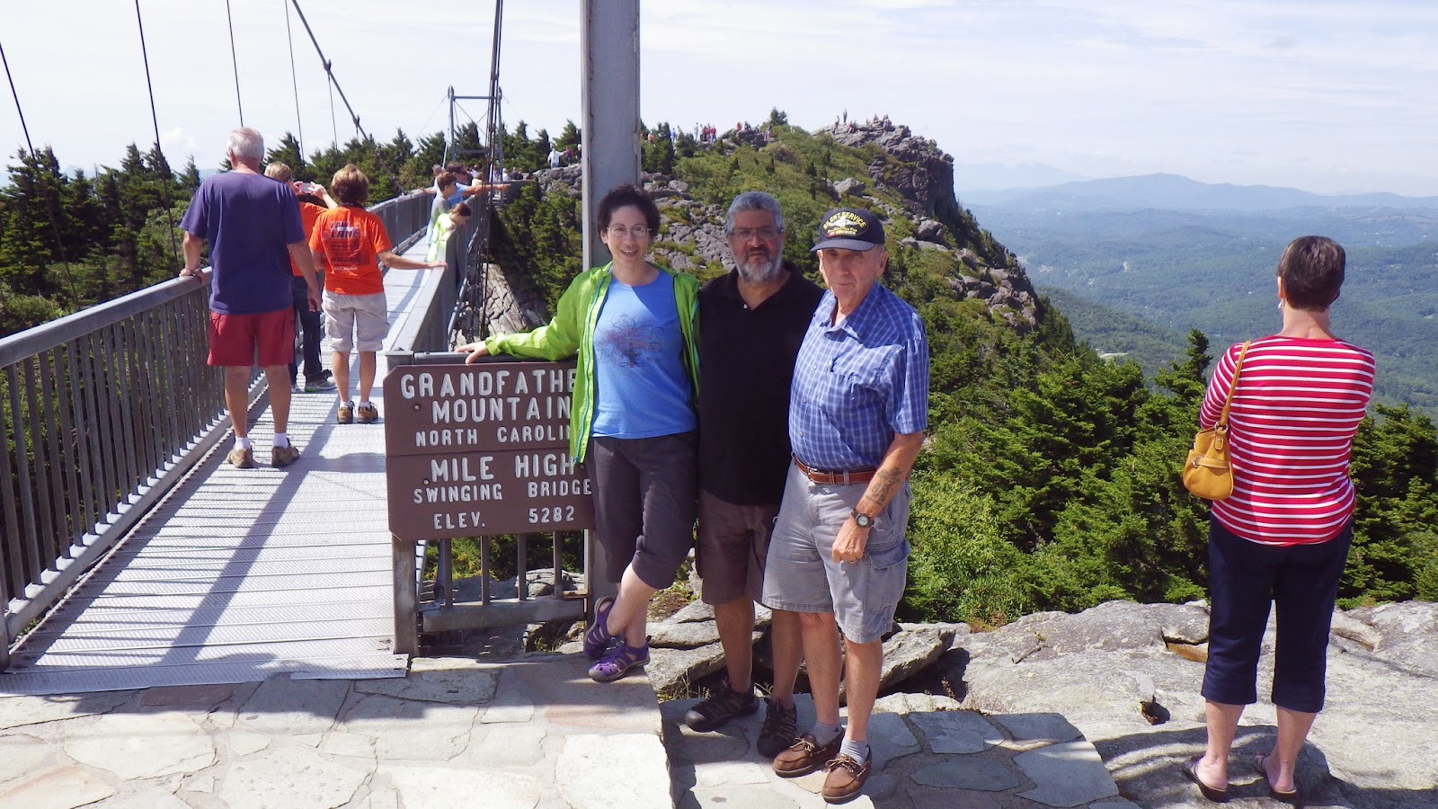 | Grandfather Mountain actually provides a volunteer at this bridge who takes photos for people, which is how this picture contains me, Ambrose and his Dad all at the same time. |
