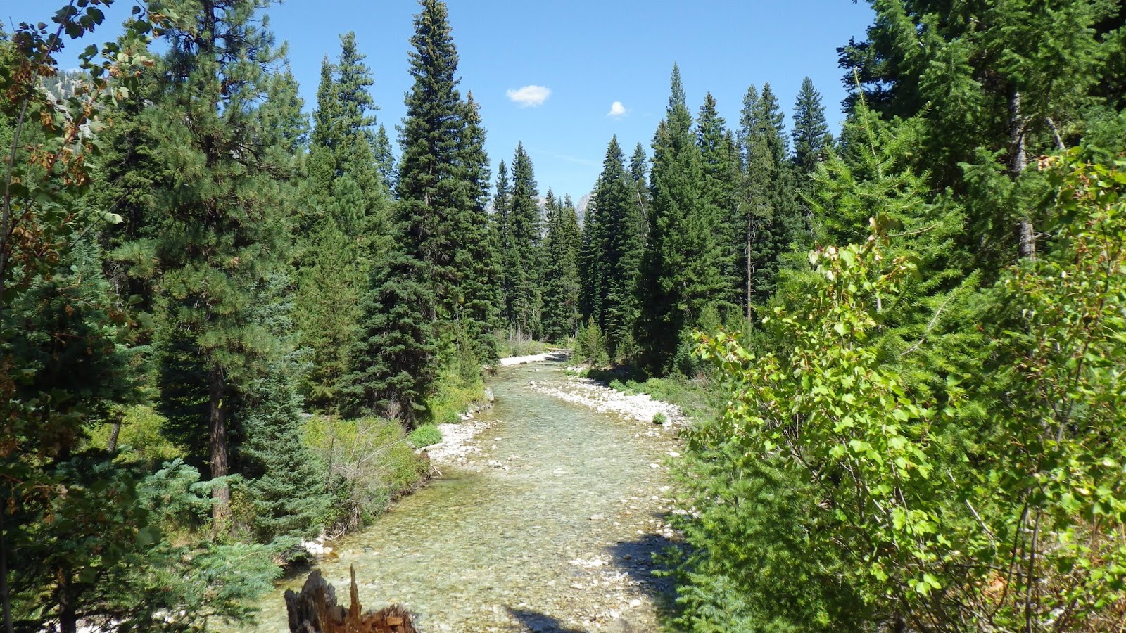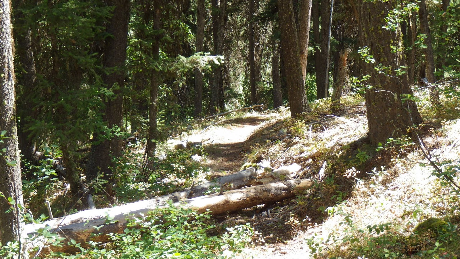 We passed a side trail that I noted led to a pit toilet and then the trail curved up and left the campground behind. Now we could hear or see the Middle Fork of the Boise River rushing below, and I was tickled to think that we were going to follow this river all the way up to its origin on this trip.