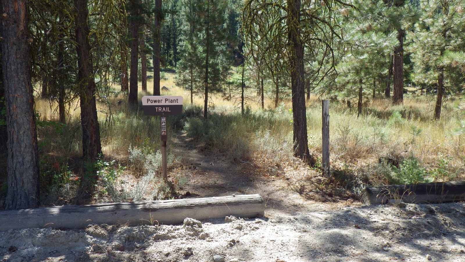 We set off on the trail, which starts by winding its way behind and beside the Power Plant Campground. There are sites visible from the trail, some of which had vehicles and tents in evidence, though I didn’t see or hear any people. The trail itself was well maintained and had a nice surface to walk on. Though the sun was overhead, we walked through good tree cover and it wasn’t too hot.