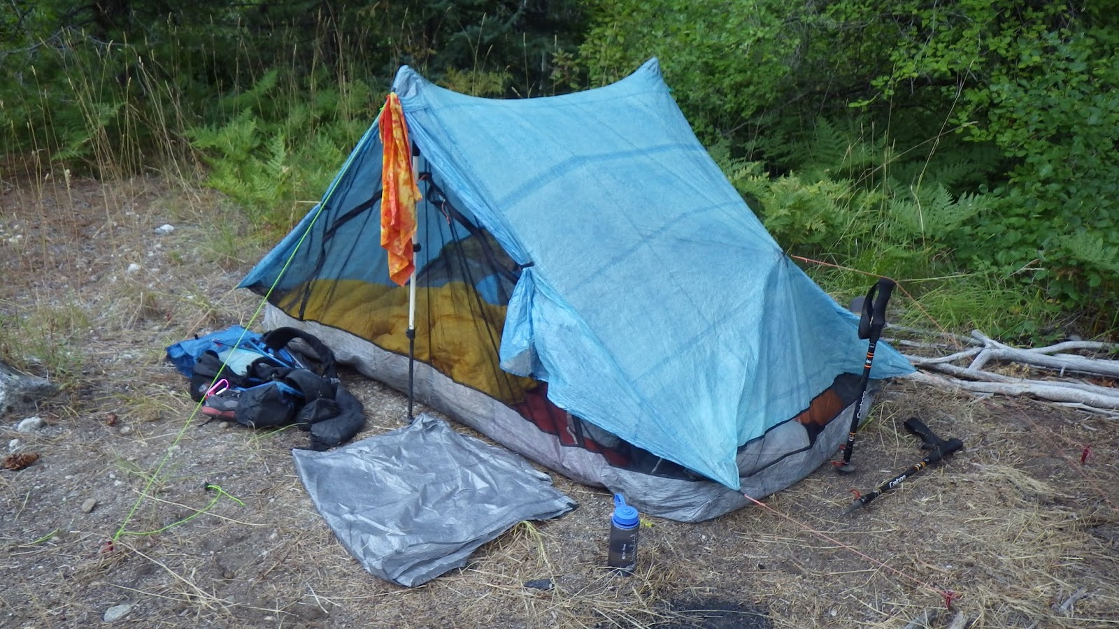 Not long after that, the trail came to a place where we could access the river for water if we wanted, but we hiked on, figuring to use Leggit when we got there. We entered the wilderness area, and crossed Leggit Creek. There weren’t a lot of options for campsites, so we picked one that had been used before and it was a fair site.
