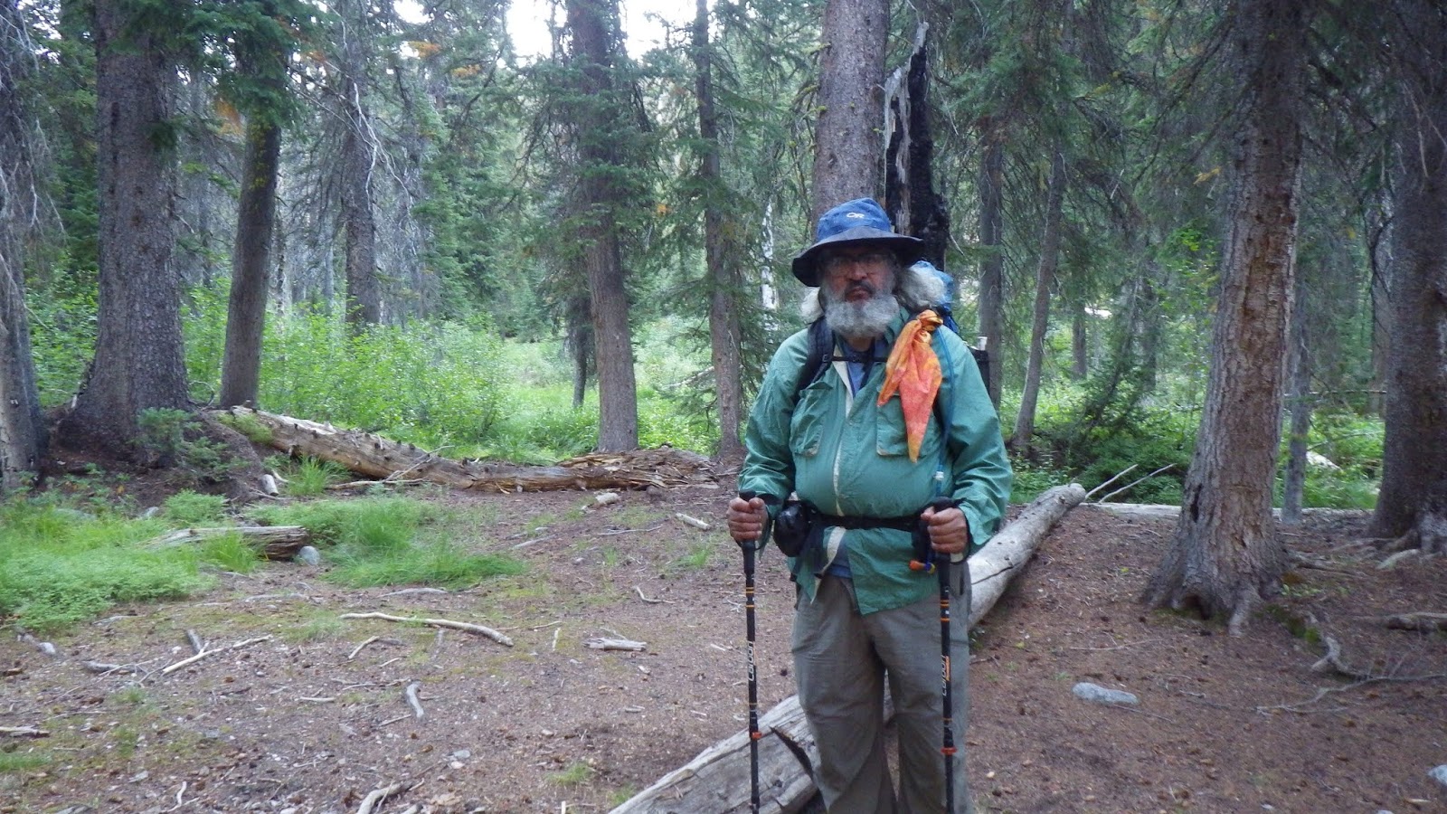 We took a short break after that crossing. Then we ran into another couple and chatted for a bit – I asked about their packs, because they looked light weight and I was looking to get a lighter weight pack. Then it started snowing and we went our separate ways. I got my pack cover on while Ambrose went ahead and caught a glimpse of an elk.