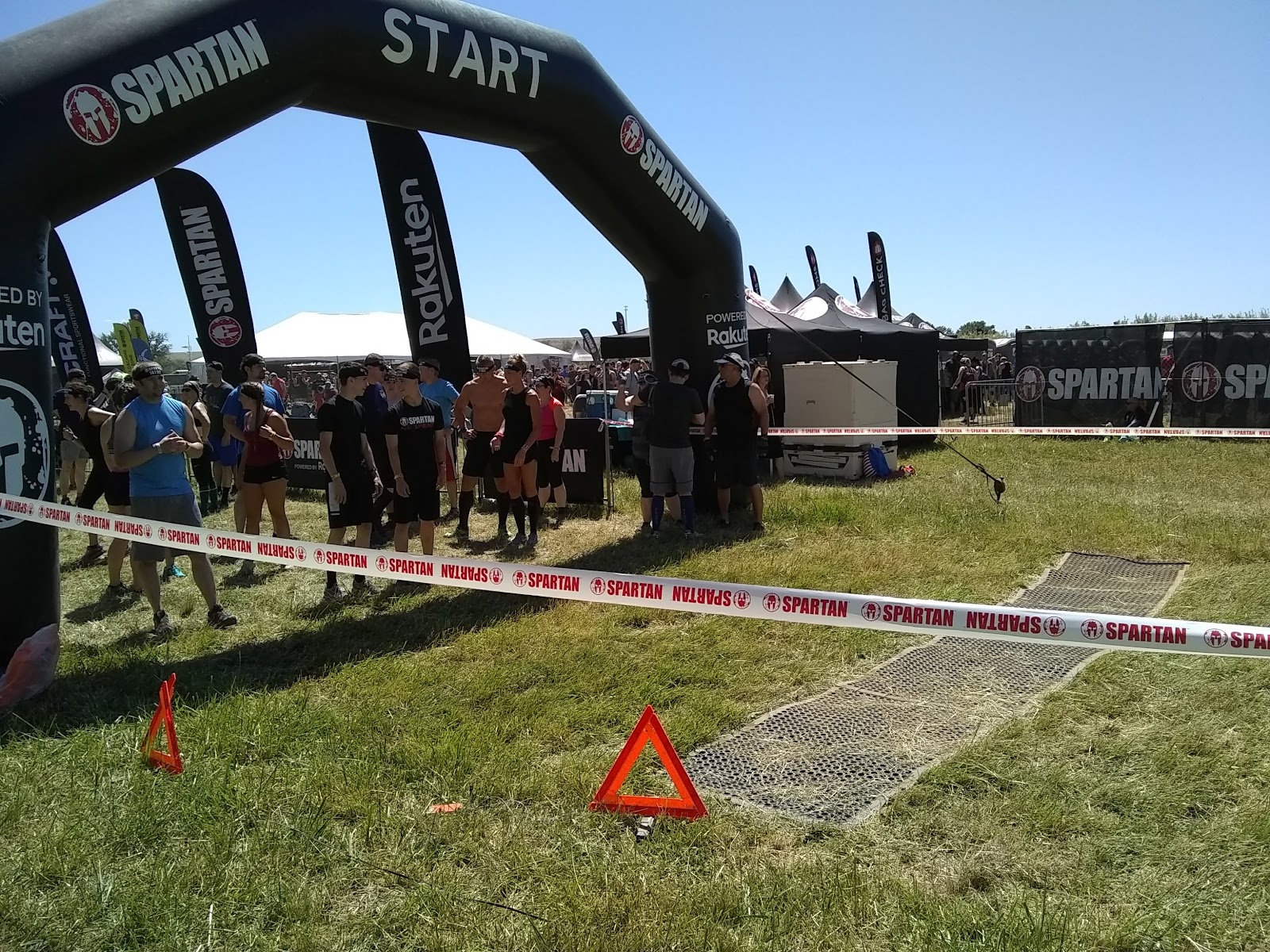 I had an earlier start time this year, so we got going from the house before 9:30 am and Google Maps insisted it would take us an hour to arrive at our destination. Ha! That would have been true if there were no Spartan Race going on at our destination, but since there was, we ended up with about 45 minutes worth of stop and go traffic to get to the parking area. Luckily, we snagged a spot near the port-o-potties, because after that wait we both needed a pit stop.