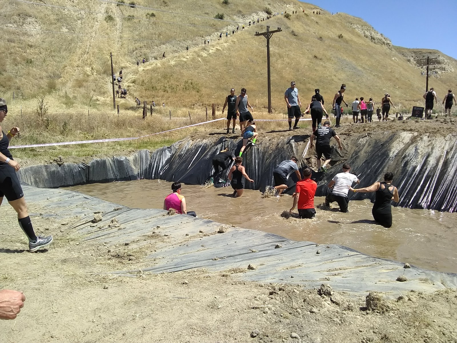After that was the Barbed Wire Crawl, which I only like because I am small enough to mostly avoid hitting the barbs while I crawl. Again, it was much nicer to do this as part of a group, joining in some banter or just listening to them and feeling like I was included. One girl ripped a scab on her knee and went to rolling instead of crawling. Since we weren’t that far from the Rolling Mud, her clothes picked up a lot of dirt and made mud.