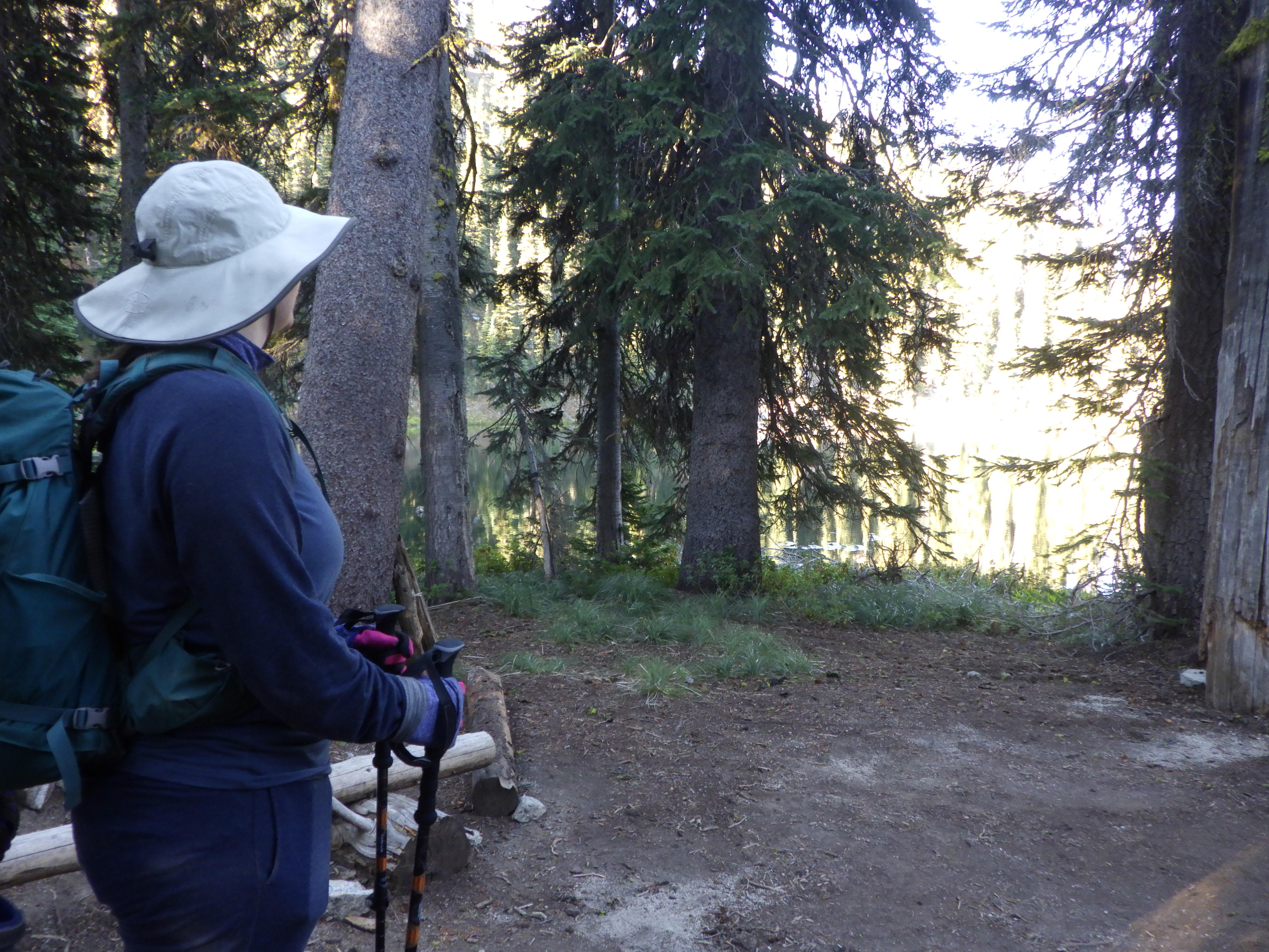 At some point that morning, she finally had to dig her first hole. Backpacker milestone! I also had to dig a hole, which always delays me in getting on the trail, but the sun came out and got us moving a bit quicker, and we made it on to the trail a little after 8 in the morning. Well within my tolerance for the day’s hike.