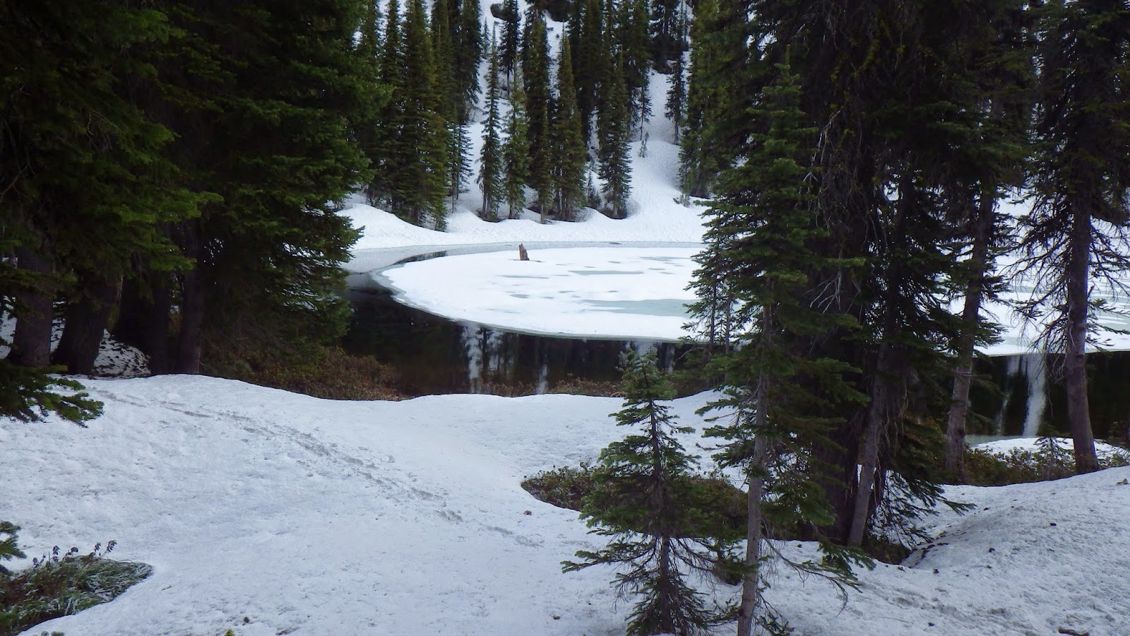 Just before Shit Creek, snow covered the trail. I wasn’t worried at that point. There’s been snow leading up to that crossing before, and I knew that would likely mean some snow higher up. But I wasn’t worried. I didn’t think there would be that much snow. Mounds covering the trail maybe, and a few sections of having to find the trail.