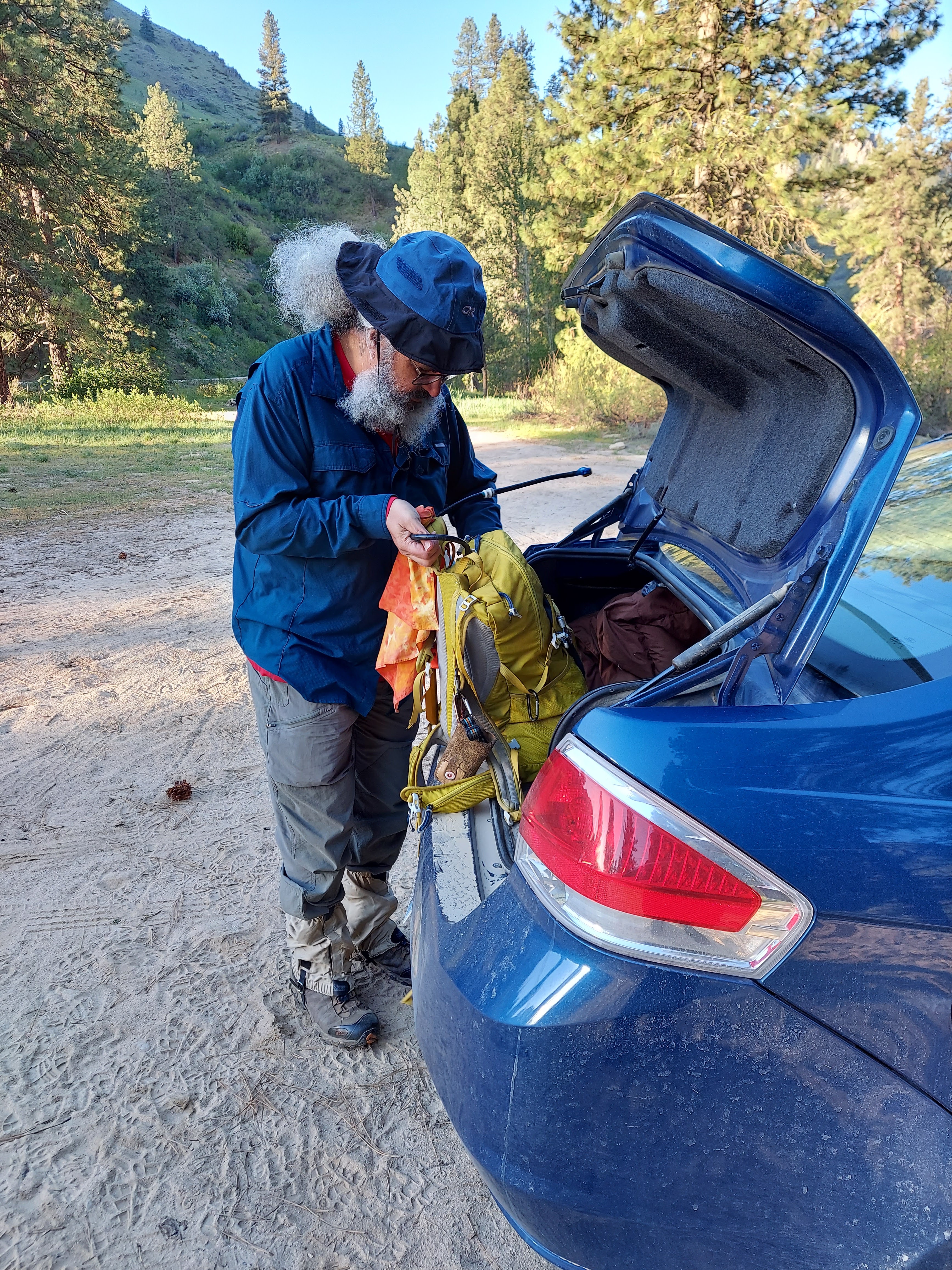 So, I’ve got a sinus infection, but Ambrose wants to go out and do our first day hike of the season out by Sheep Creek. I still want to get out into the woods, even if I wasn’t up for a day hike, so I hauled out my camping chair for the Saturday trip.