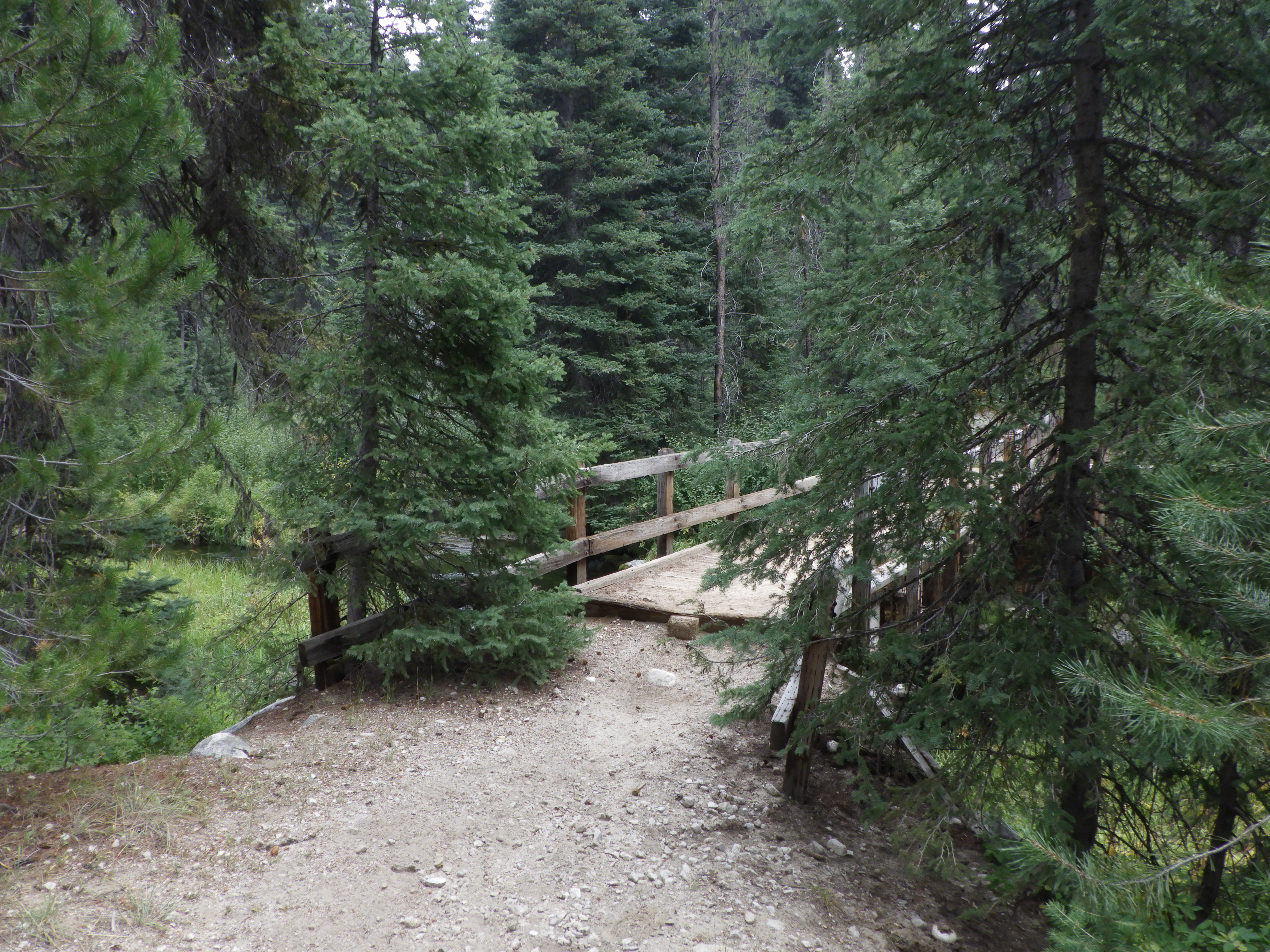At the campground, we saw a bunch of horse trailers and one truck parked near the trailhead, but there were no campers at all. The truck turned out to belong to some day hikers staying in a forest service cabin about 5 miles away. I tried to ask them about the condition of the trail they had just come off, but they didn’t understand my question (or I didn’t understand their answer). They seemed a bit in awe that my friend and I were going on a backpacking trip.