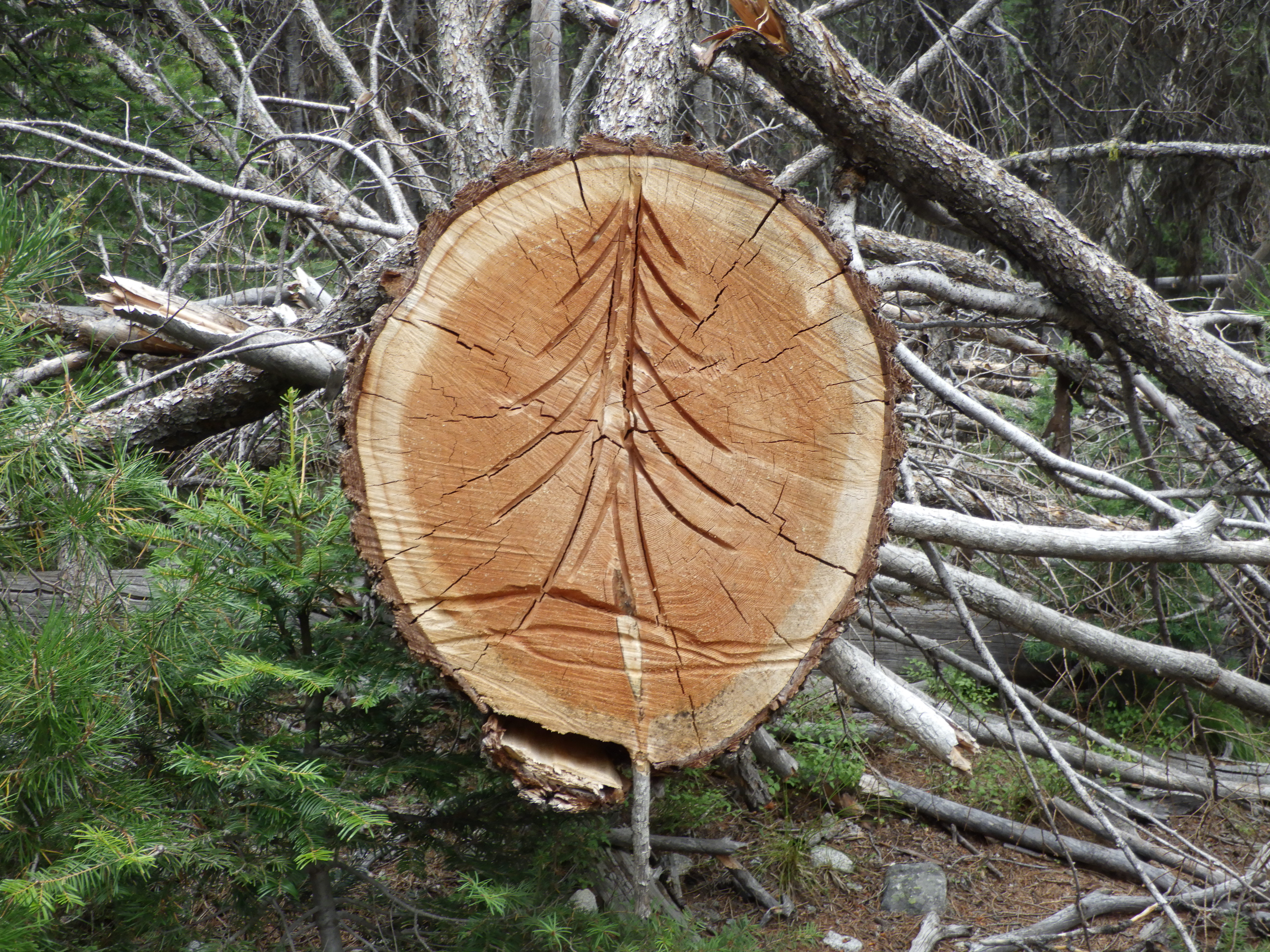 | Aw, someone carved a tree on the stump. |