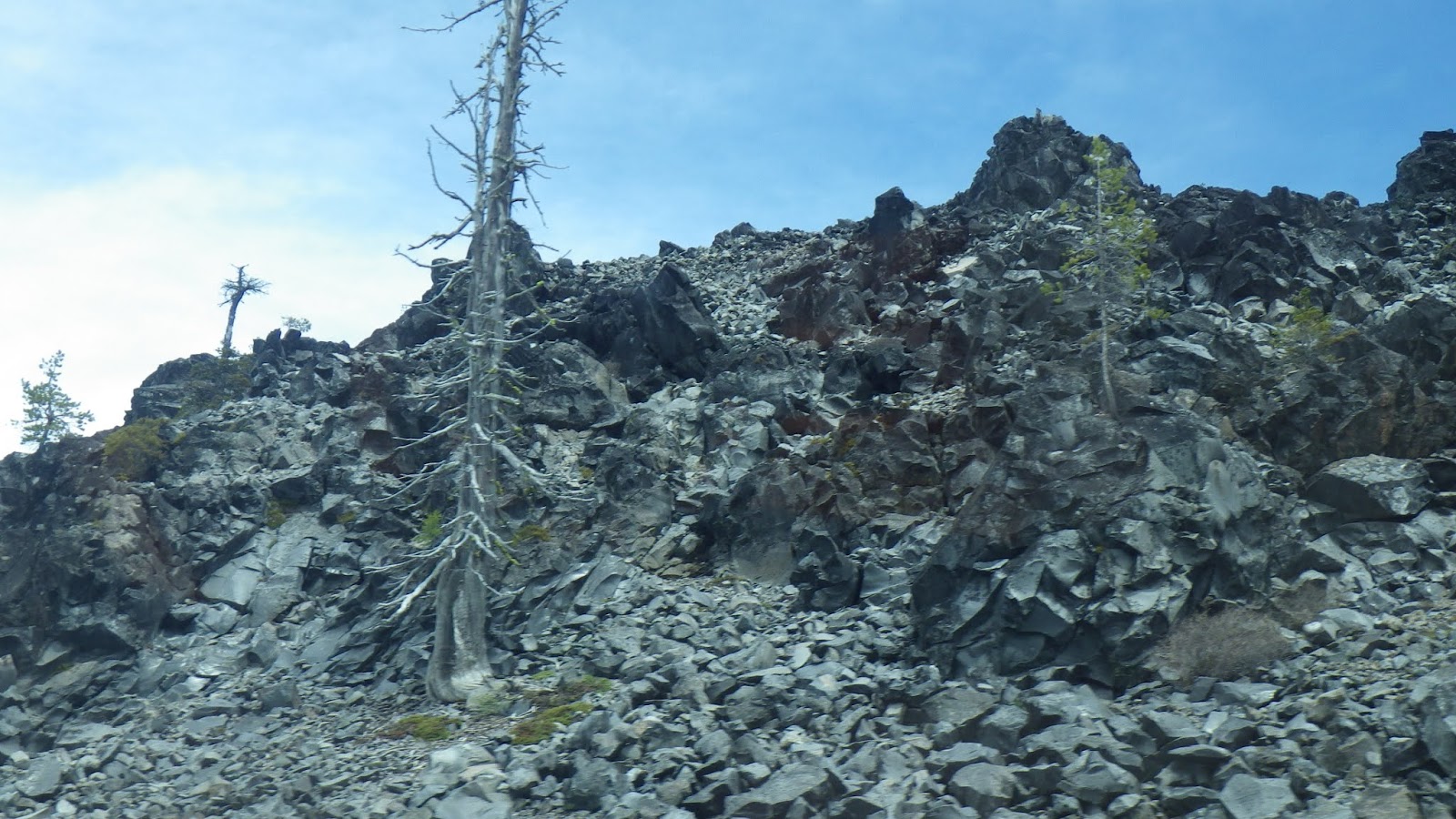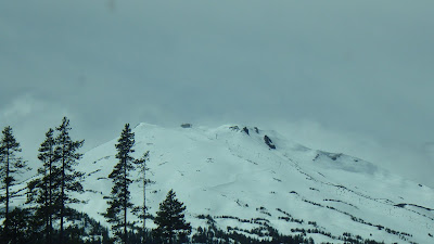 We made our way to Bend, and then, based on the gazette, decided to head towards Mt Bachelor and see what we could see. I was surprised that the ski lifts were visible against the snow even from the road, little tinker toy black sticks tracing a line up the snow. We thought about turning back as we discovered that snow covered the ground to the tune of a couple of feet near the highest point of the road. But then it started to clear, so we tried a spot near Elk Lake for camping. There were other people there, including several dozen tents that were from a Boy Scout troop. So we figured it would be fine, even though the site wasn’t technically open for the season yet.