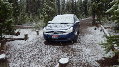 See, we could spend the night in the snow, no problem. It would be pushing the limits of what our gear could handle, but we could do it. The problem would be in getting out the next day. If it froze overnight, which it seemed likely to do, then the dirt road we had come in on might be impassable to our Ford Focus. Not to mention the high part of the pass near Bachelor. No, if we were going to get out for sure, it had to be now.