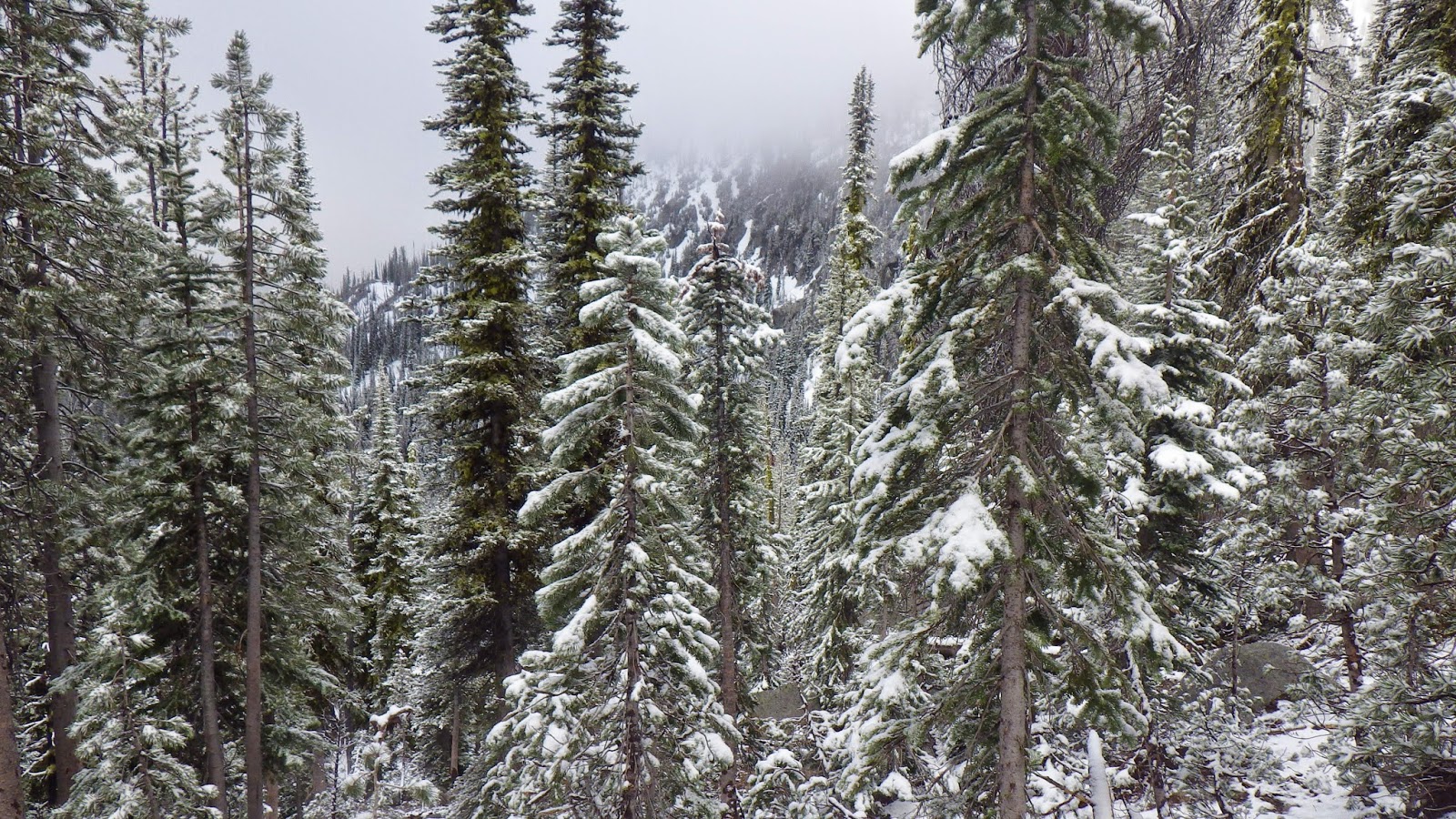 I ate a snack as soon as I got back in my sleeping bag in order to help myself stop shivering. It snowed in the night, and our three-season tent was saturated with moisture and beginning to drip. When I got in and out of the tent, snow fell down from the tree against which my side of the tent was snugged. I had a hard time even mustering the energy to care that I was getting a little wetter and colder. The important thing was to get warm enough to fall asleep again, which thankfully did not take long.
